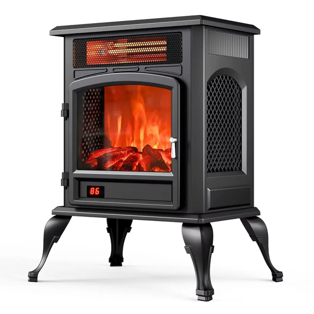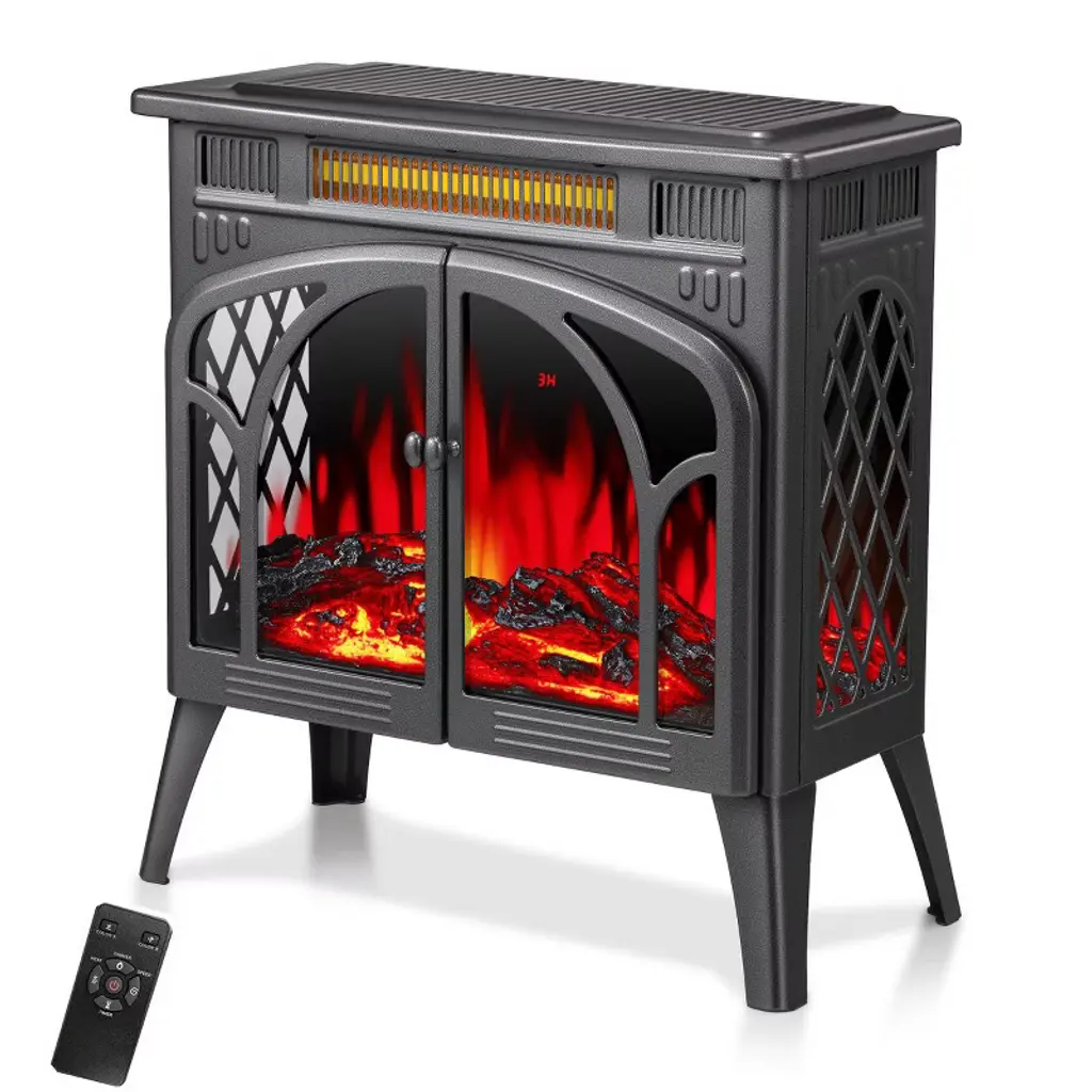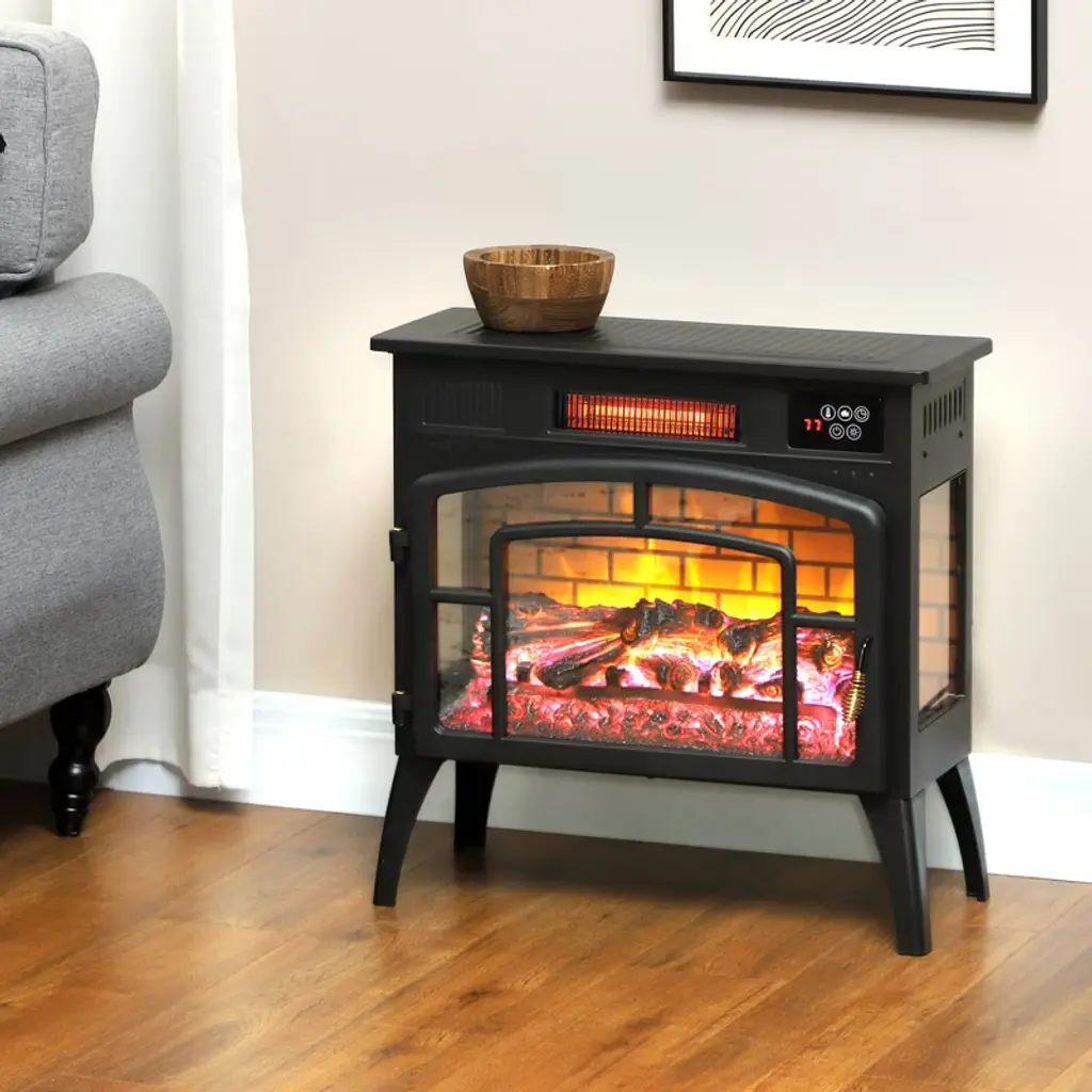 Homcom Electric Fireplace Stove, Freestanding Infrared Fireplace Heater With Realistic Flame Effect & Adjustable Temperature, 1500w, Black