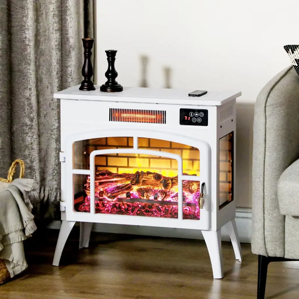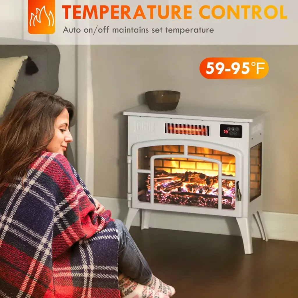Homcom Electric Fireplace Stove, Freestanding Infrared Fireplace Heater With Realistic Flame Effect & Adjustable Temperature, 1500w, White