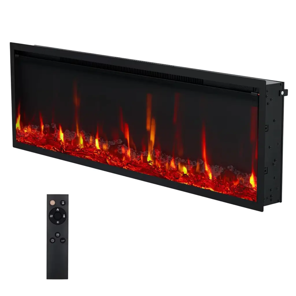 This 36-inch built-in fireplace seamlessly blends modern technology with elegant design, adding warmth and artistic flair to any home. Utilizing advanced LED technology, it simulates realistic, leaping flames and features a heat-free mode for year-round use, offering both energy efficiency and practicality. Users can easily adjust the flame brightness, timer (auto-off from 0.5 to 9 hours), and heat on/off via remote or manual controls to meet diverse needs. The interior is inlaid with exquisite crystal embellishments, reflecting a dazzling glow through the interplay of light and shadow, creating a romantic and luxurious ambiance. Furthermore, it features an overheat protection function for safety and reliability, making it an ideal choice for enhancing the style of living rooms, bedrooms, or commercial spaces.