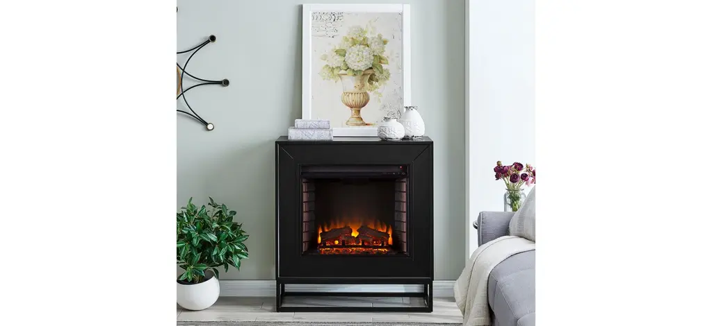 Go for a spacewalk on the wild side with the Krikham Fireplace. Open base plays up negative space, floating this fireplace into your modern wallscape. Sleek black finish and simple lines please even the most minimalist of style palettes, heating up your living room love. Orbit your style around this monochrome electric fireplace in your open concept apartment and turn on the sun.