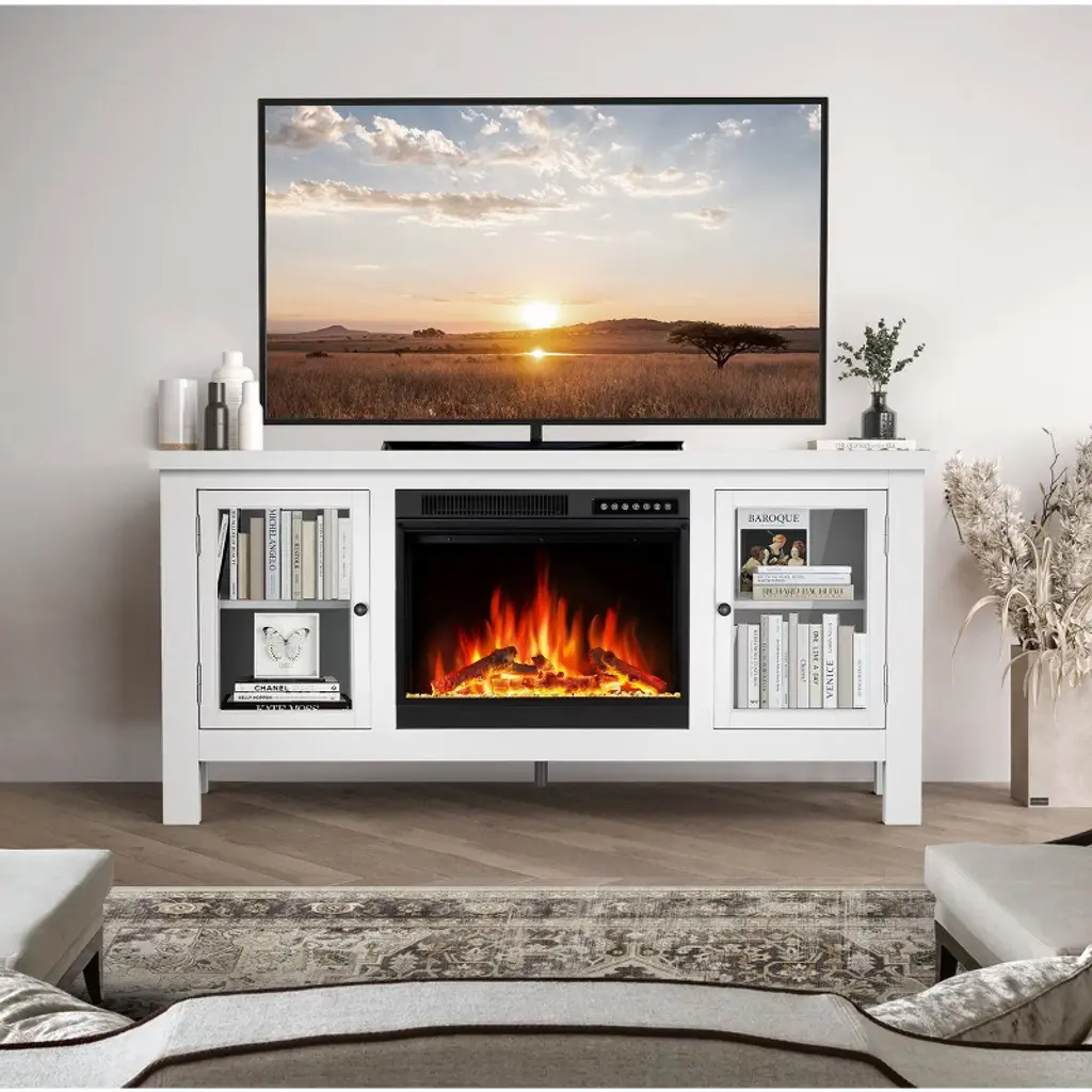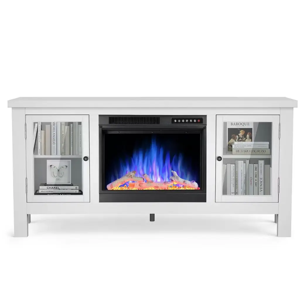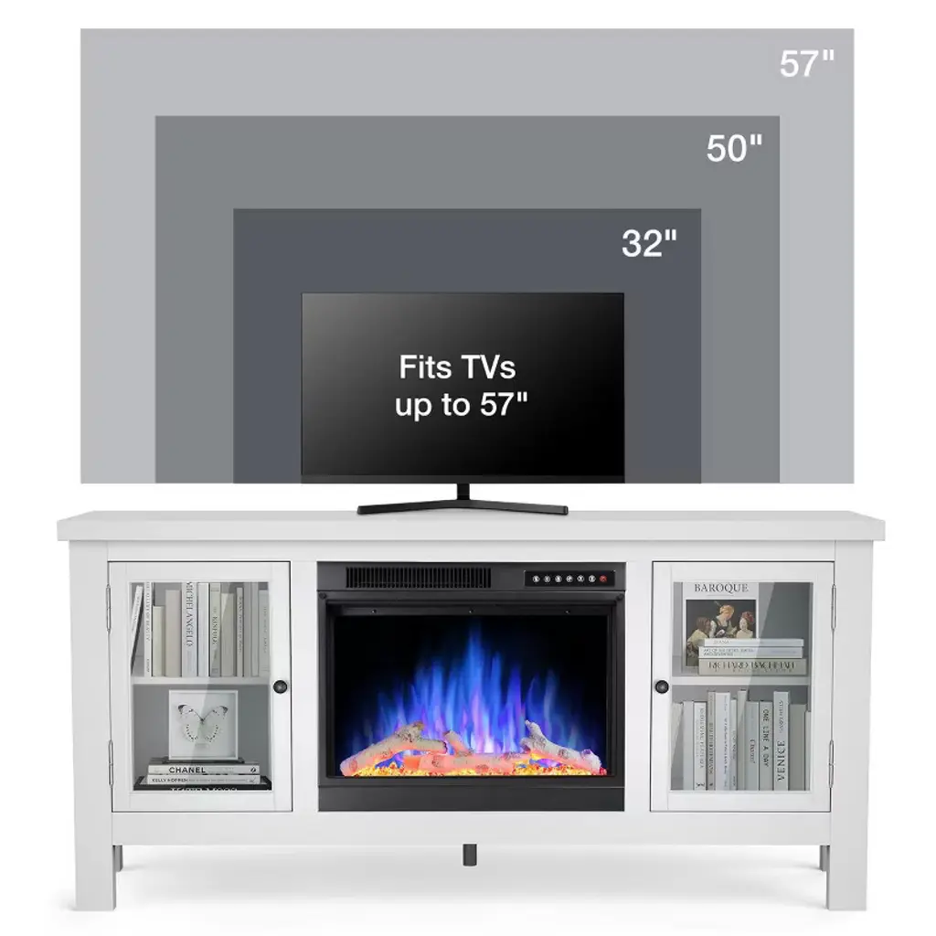 Kismile 57" Electric Fireplace Tv Stand With Storage Cabinets, Electric Fireplace With Mantel With Remote Control Feature 750w/1500w Settings