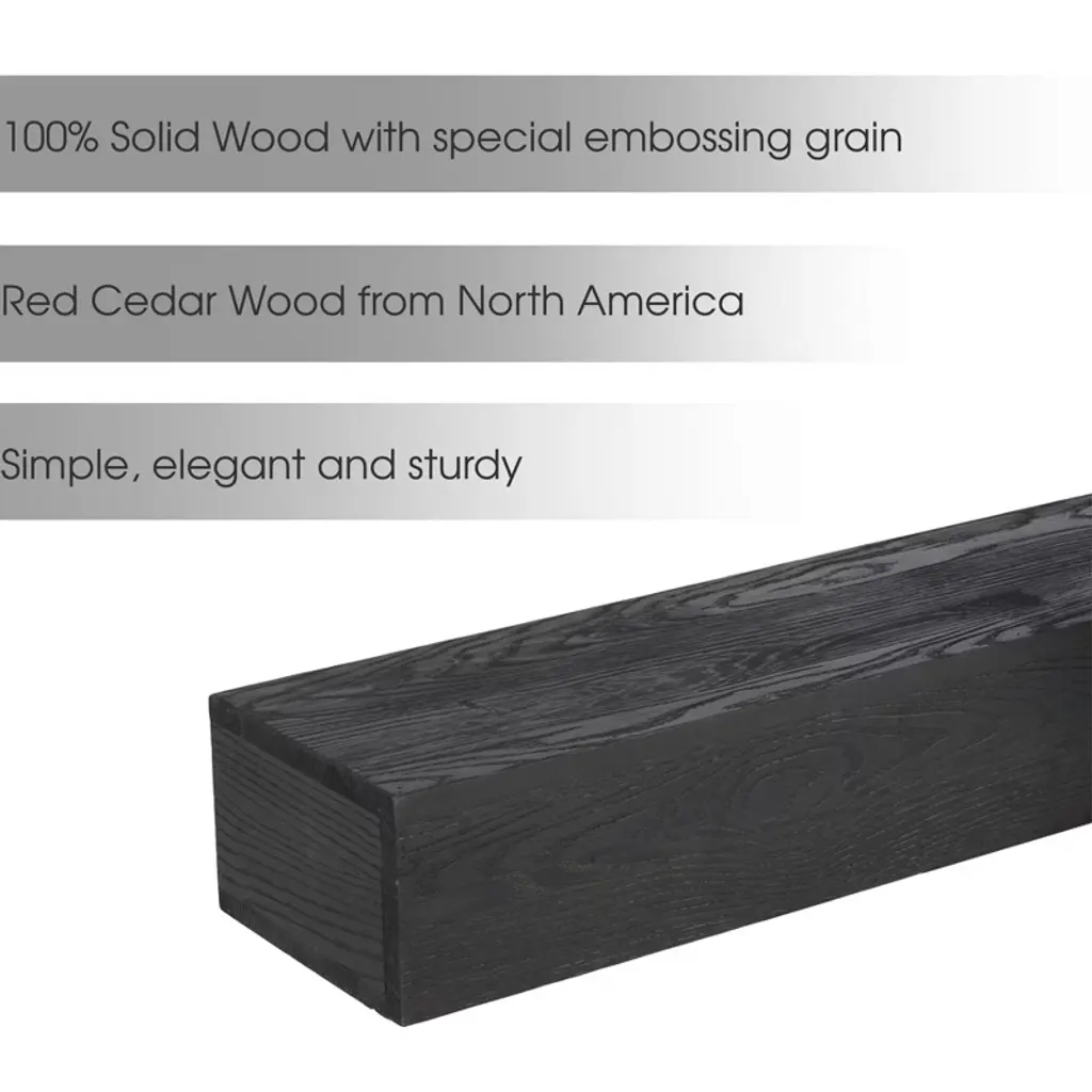 Wood Fireplace Mantel is made of solid rustic cedar wood; Brushed surface finish with water-based coating; add a rustic touch to living rooms or kitchens.