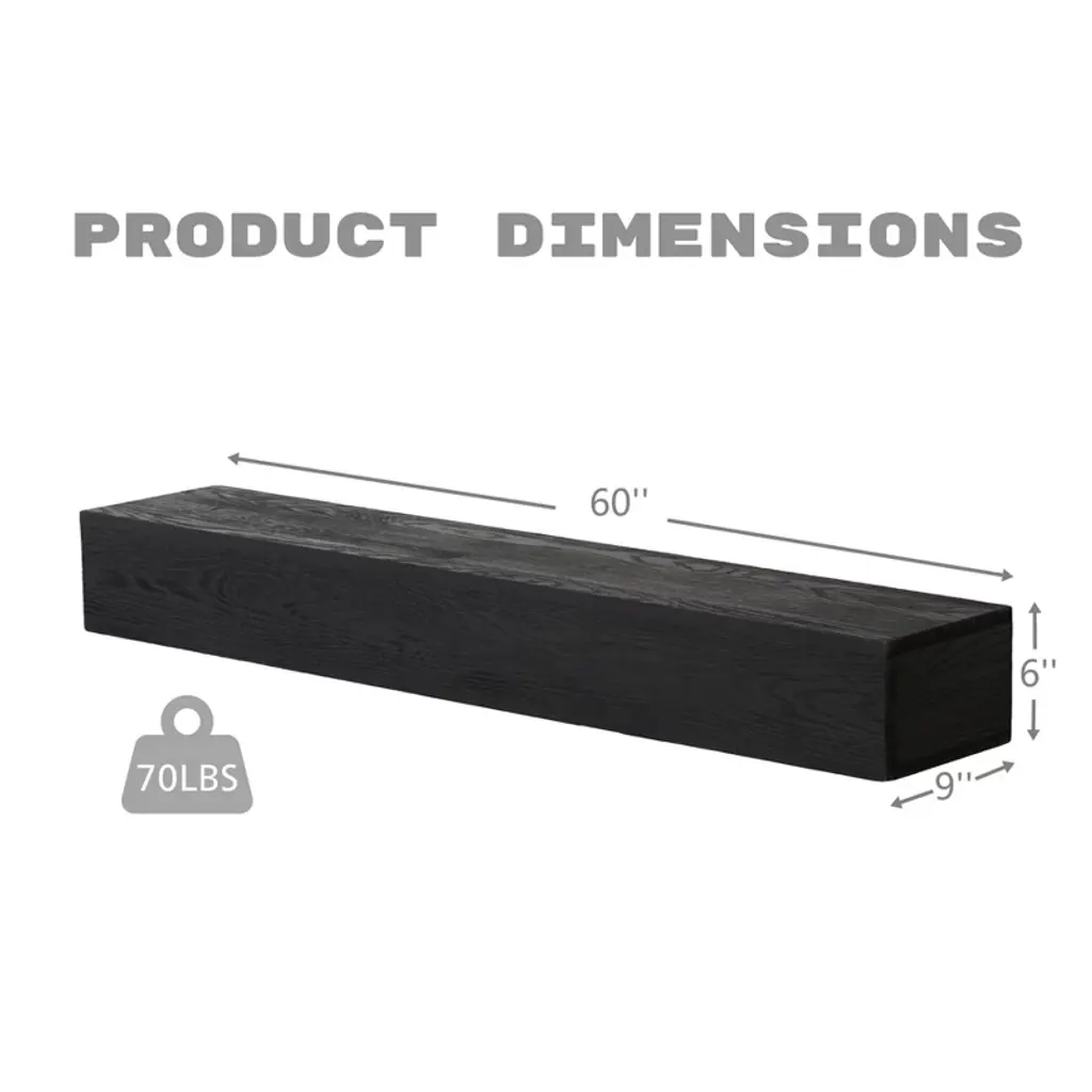 Ktmbdw 60" Fireplace Mantel - Wall-mounted Mantles For Over Fireplace - Farmhouse Fireplace Mantle Shelves - Floating Fireplace Mantel - Black