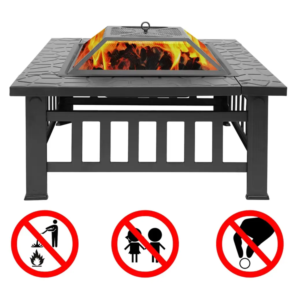 Ktmbdw Multifunctional Fire Pit Table 32 Inch Square Metal Firepit Stove Backyard Patio Garden Fireplace For Camping, Outdoor Heating, Bonfire, Black