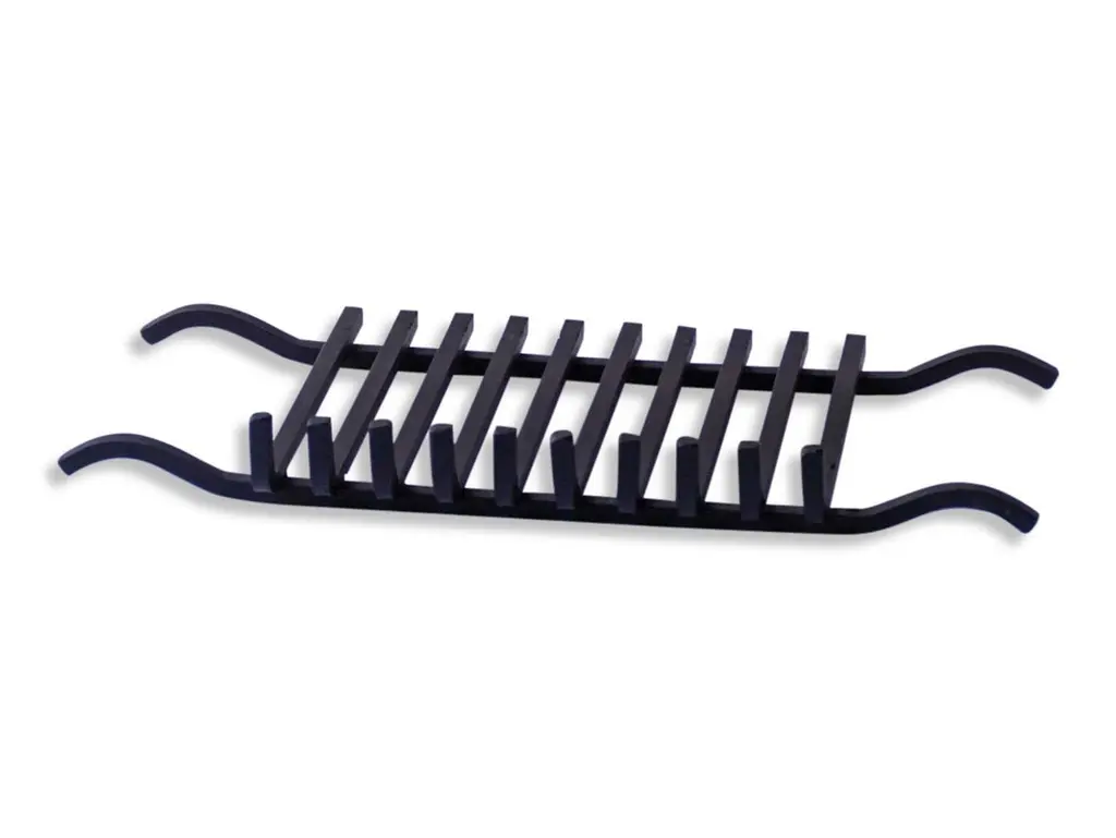 Made of 1.4 cm (0.55") thick steel bars.All sizes of the fire grate of fireplace rack are outside sizes. Distance between the beams is 26.5 cm (10.44") (including the beams). Measures: 26" x 13".Color: black.