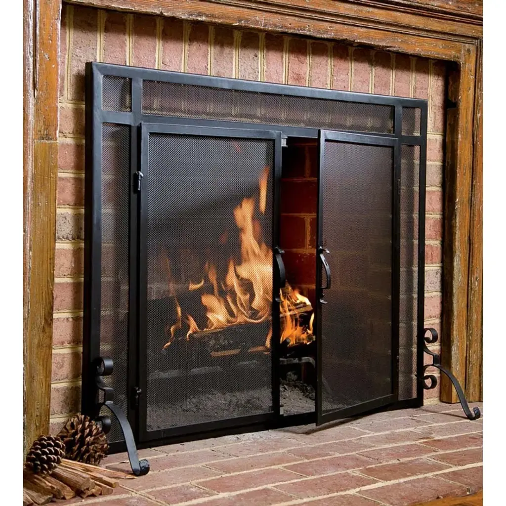 The clean lines and understated style of the fireplace screen with doors complement any decor. Heavy-duty mesh safely contains sparks, while the design calls to mind tracery windows in gothic architecture. The two-door design makes fire tending easy and safe. Magnetic closures allow you to open the doors easily and keep doors safely closed for added peace of mind. The doors open wide to make your entire firebox accessible when adding logs or stoking the flames. Piano hinges on the doors offer full-length support and long-term alignment; adjustable back feet to fit any firebox and uneven hearths.