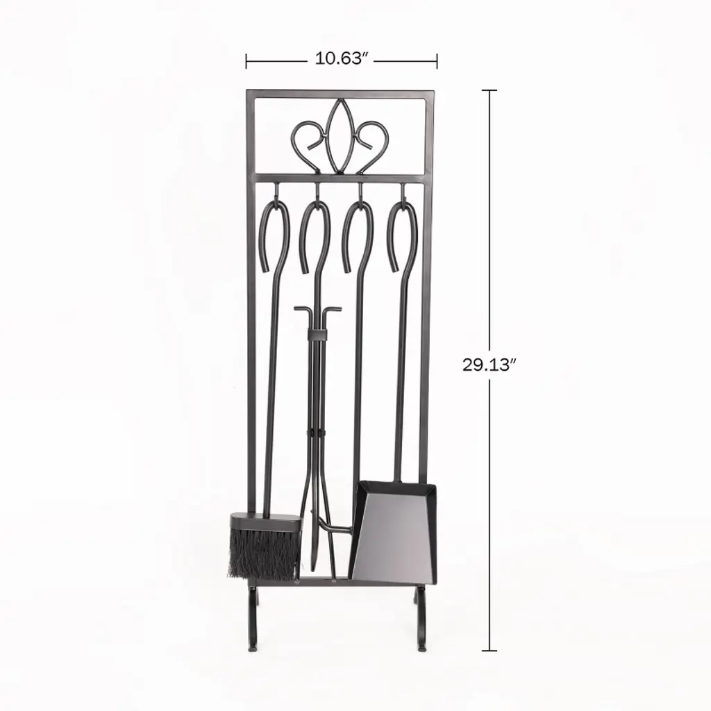 These Fire Pit Accessories for Outside and Inside by Lavish Home are an essential and practical set for every fireplace. This kit comes with everything you need to create and maintain your fireplace, wood-burning stove, or firepit, including a fire pit poker, fireplace shovel, fire pit tongs, a broom, and an elegant base stand to safely store and display all the fireplace tools. Designed for indoor and outdoor use, these fire pit accessories are constructed from wrought iron for durability and feature ergonomic handles for a comfortable, safe, and secure grip when stoking the fire, placing kindling wood, or sweeping away ash.