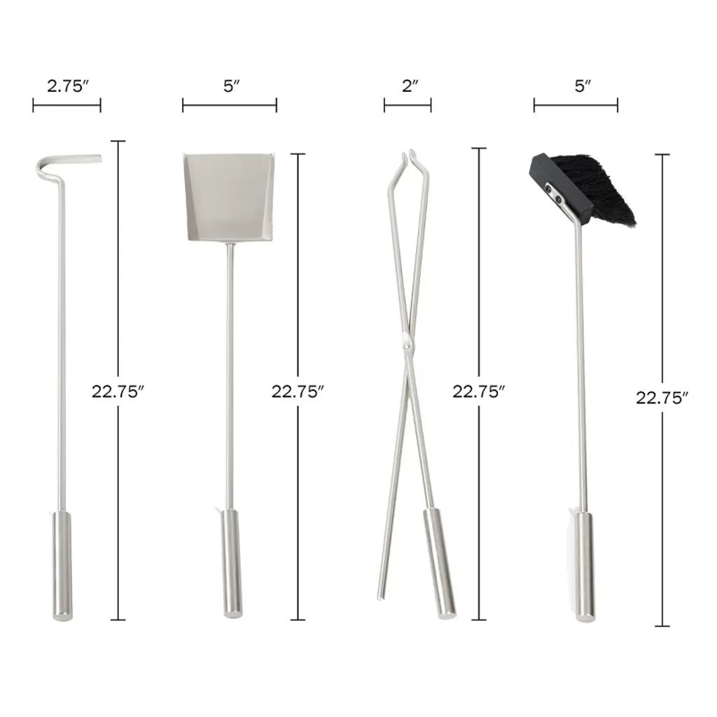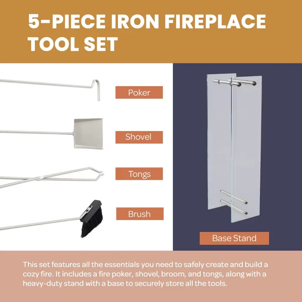 These Fire Pit Accessories for Outside and Inside by Lavish Home are an essential and practical set for every fireplace. This kit comes with everything you need to create and maintain your fireplace, hearth, or wood-burning stove, including a fire pit poker, fireplace shovel, fire pit tongs, a broom, and an elegant glass stand to safely store and display all the fireplace tools. Designed for indoor and outdoor use, these fire pit accessories are constructed from wrought iron for durability and feature ergonomic handles for a comfortable, safe, and secure grip when stoking the fire, placing kindling wood, or sweeping away ash.