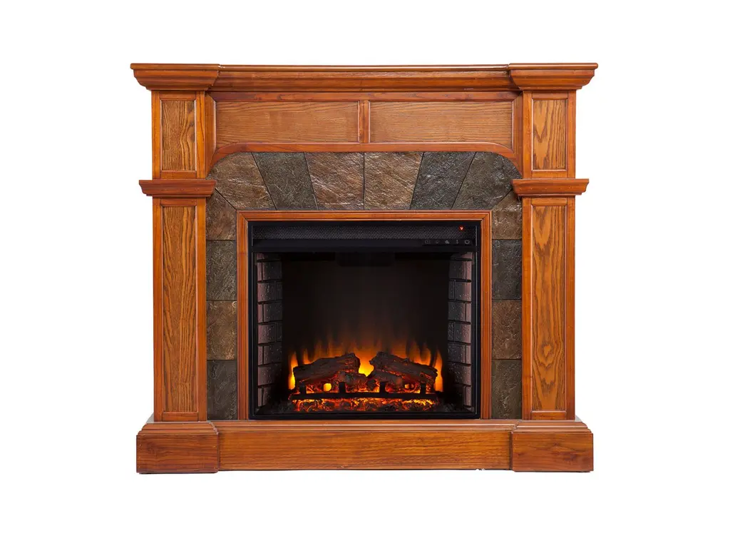The Malton Electric Fireplace provides sleek columns on either side complement the crown molding that accents the top of this electric fireplace. This particular fireplace is designed with thecapability of fitting against a flat wall or in a corner with ease.