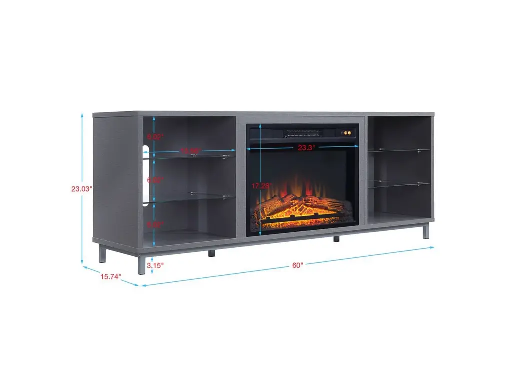 Manhattan Comfort Brighton 60" Tv Stand With Electric Fireplace