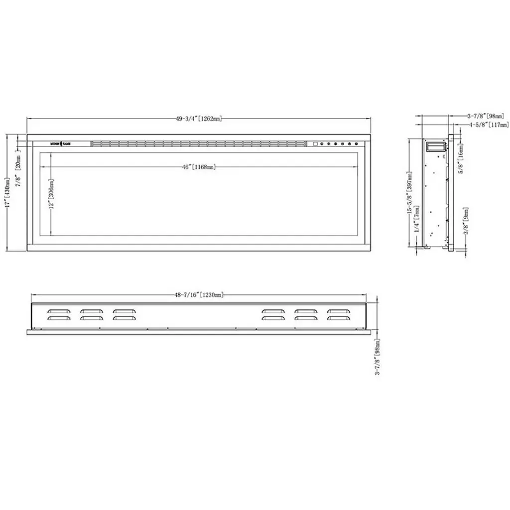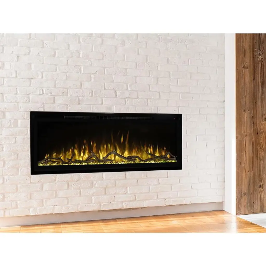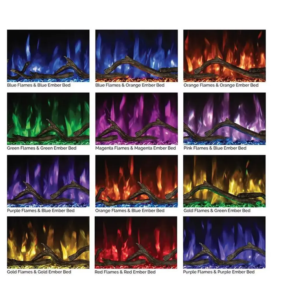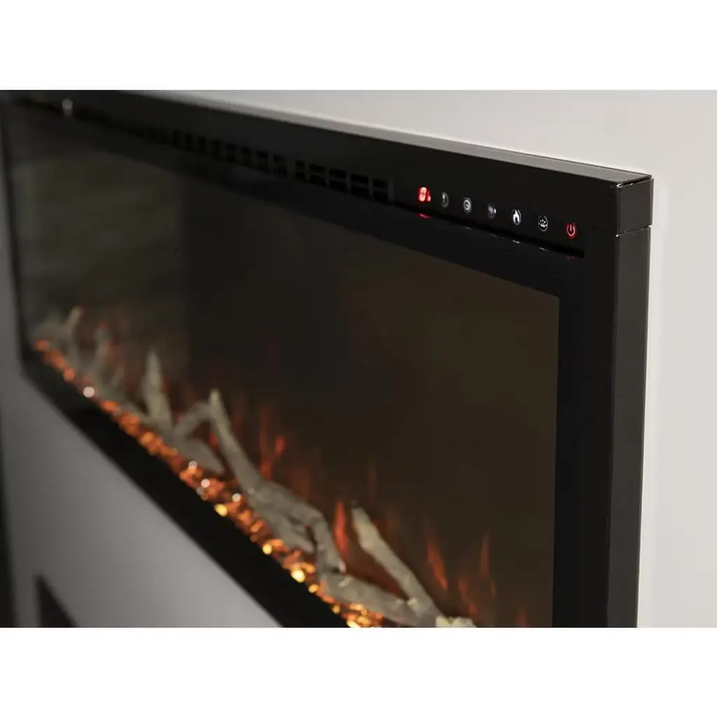 The Modern Flames 50-in Spectrum Slimline Built-In Electric Fireplace is a completely new series that offers recessed within 2" x 4" walls or direct on-the-wall installations. Featuring a sleek 5/8" trim, this fireplace maximizes the overall viewing area of the LED lit flame effects without an over obstructive frame. The flames are a new technology, Hybrid-FX which create a wonderful ambiance with 12 different color options that complement either the elegant glacier glass ember bed or stylish driftwood log set. The Spectrum series also features a fully integrated, thermostat enabled supplemental heater that is capable of warming spaces up to 400 Sq. Ft. in size. This is the perfect way to keep the room you are in nice and comfortable, without the need to heat your entire house. A convenient multi-function remote control is also included, making operation of your fireplace, and all of its many features, a breeze from almost anywhere in your room.