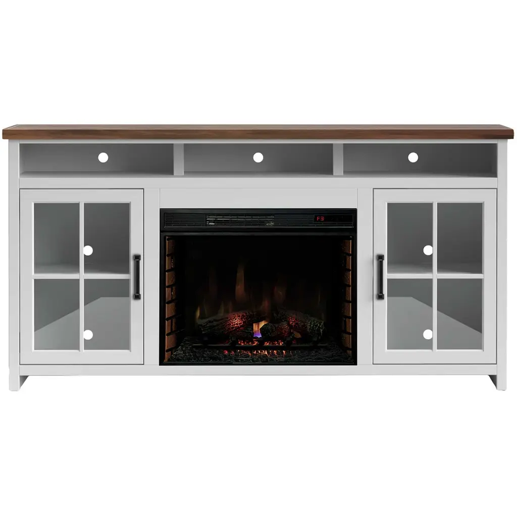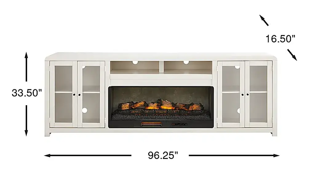 Montavilla White 96 In. Console With Electric Log Fireplace