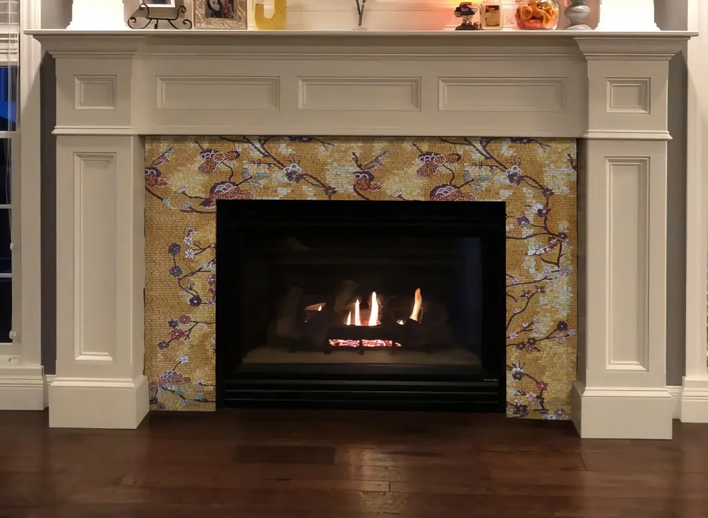 Mosaic Tile Fireplace - Japanese Floral Design - Mantel + Hearth
