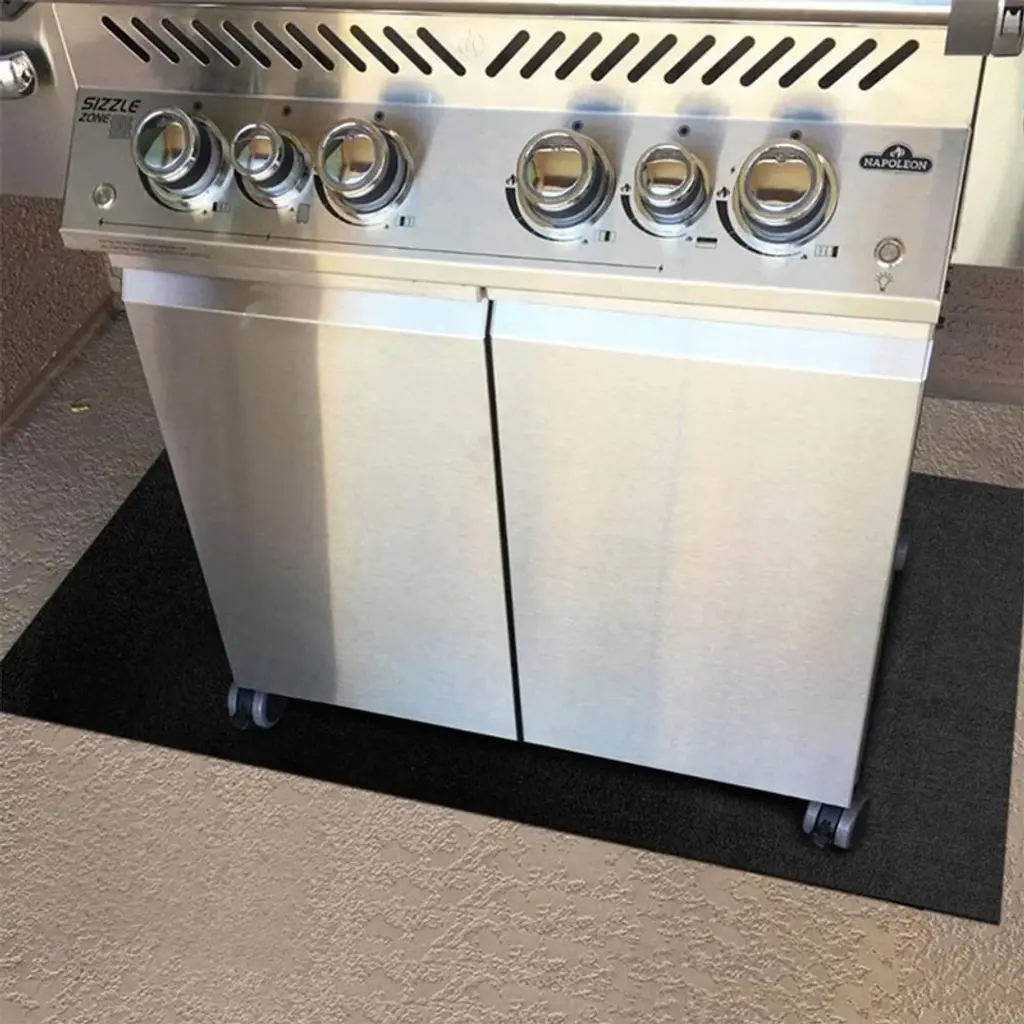 Non woven oven mat makes outdoor BBQ oil proof and protects environment. Barbecue oven mat is very important to protect the area under the fire pit or fireplace, and even the surrounding area from the impact of flying embers, bursting embers or sparks. At the same time, it has strong heat resistance and corrosion resistance. The size of under grill mat for outdoor grill is 50x36 inches. The fireproof deck and patio protector mat can protect the area below the fireplace from bursting embers or fire. The waterproof oilproof BBQ floor pad keeps the environment hygienic and tidy after an outdoor barbecue, reducing the cleaning burden and allowing you to fully enjoy the outdoors. We use more advanced fire-resistant materials for this grill mat to have better heat resistance. The indoor fire pit fireplace mat is fireproof, waterproof, and resistant to oil. The fireproof grill pad under the outdoor grill are designed to be easily rinsed with soap and water or a garden hose, and you can quickly wipe them with a damp towel to make them look new and reusable. Additionally, the grill mats can be folded up for easy storage. The fire pit pad deck protector is durable, perfect for gardens, decks, patios, grass areas, and other outdoor barbecue spots. Keep these areas free from grease, waste residues, sewage, and protect your natural environment. Upgrade your outdoor cooking game with the oil-proof waterproof BBQ protector today!