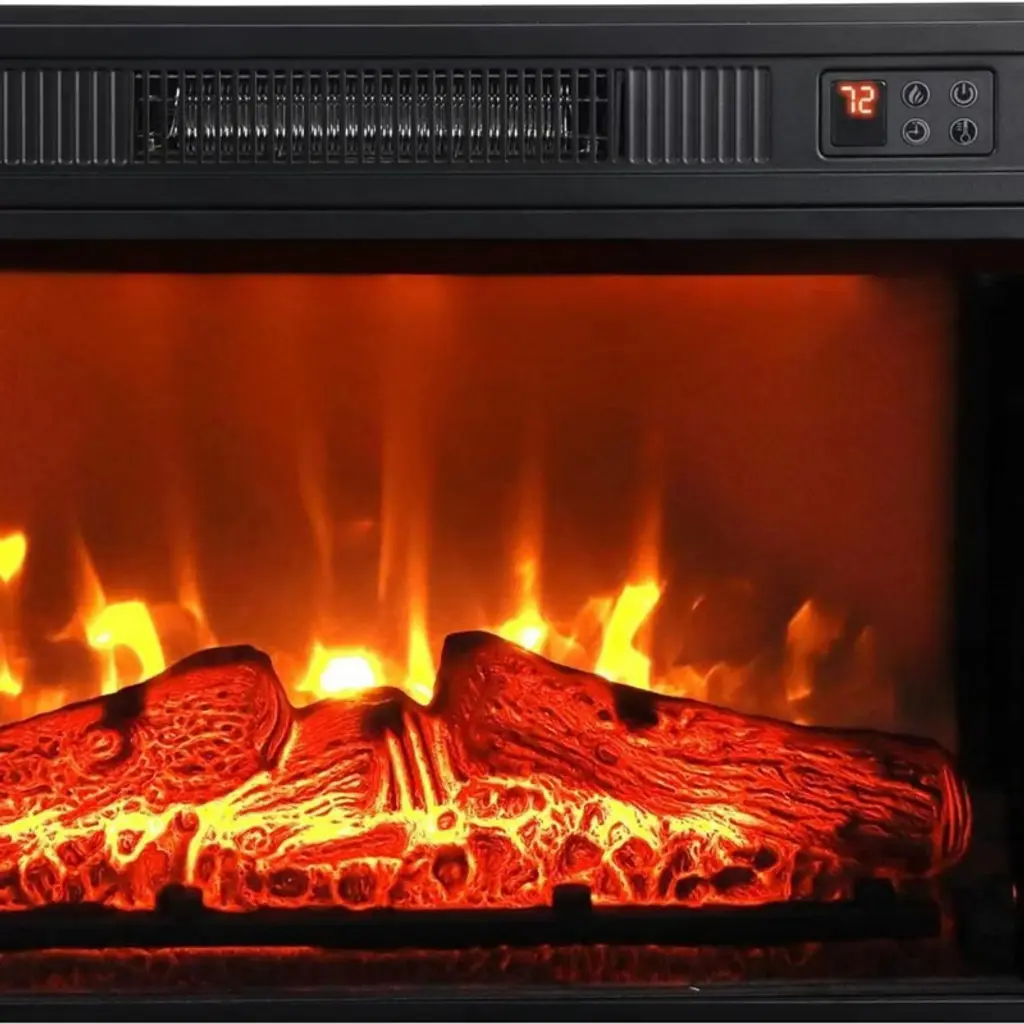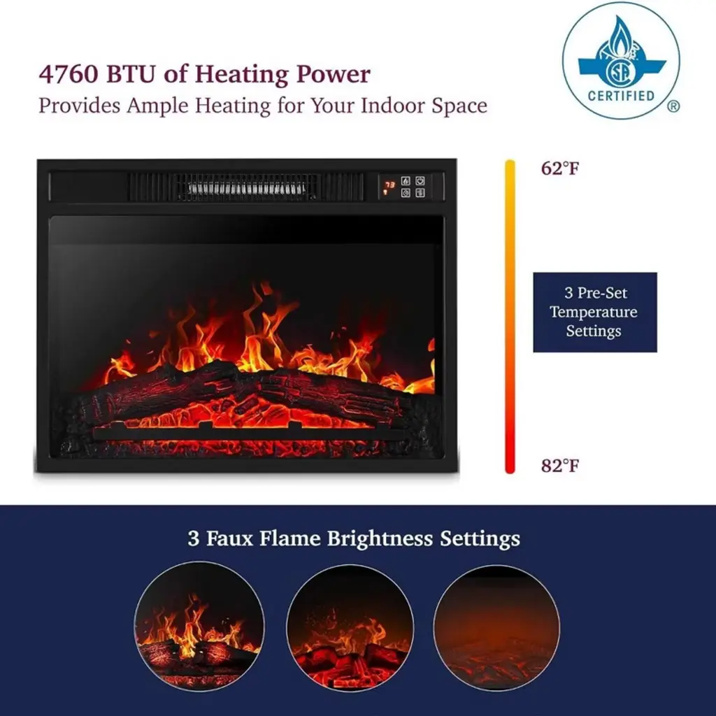 Naysaye Indoor Decorative Fireplace With Realistic Flame Effect And Log Display For Home Ambience, Black, 23.03"*51.57"*5.16"