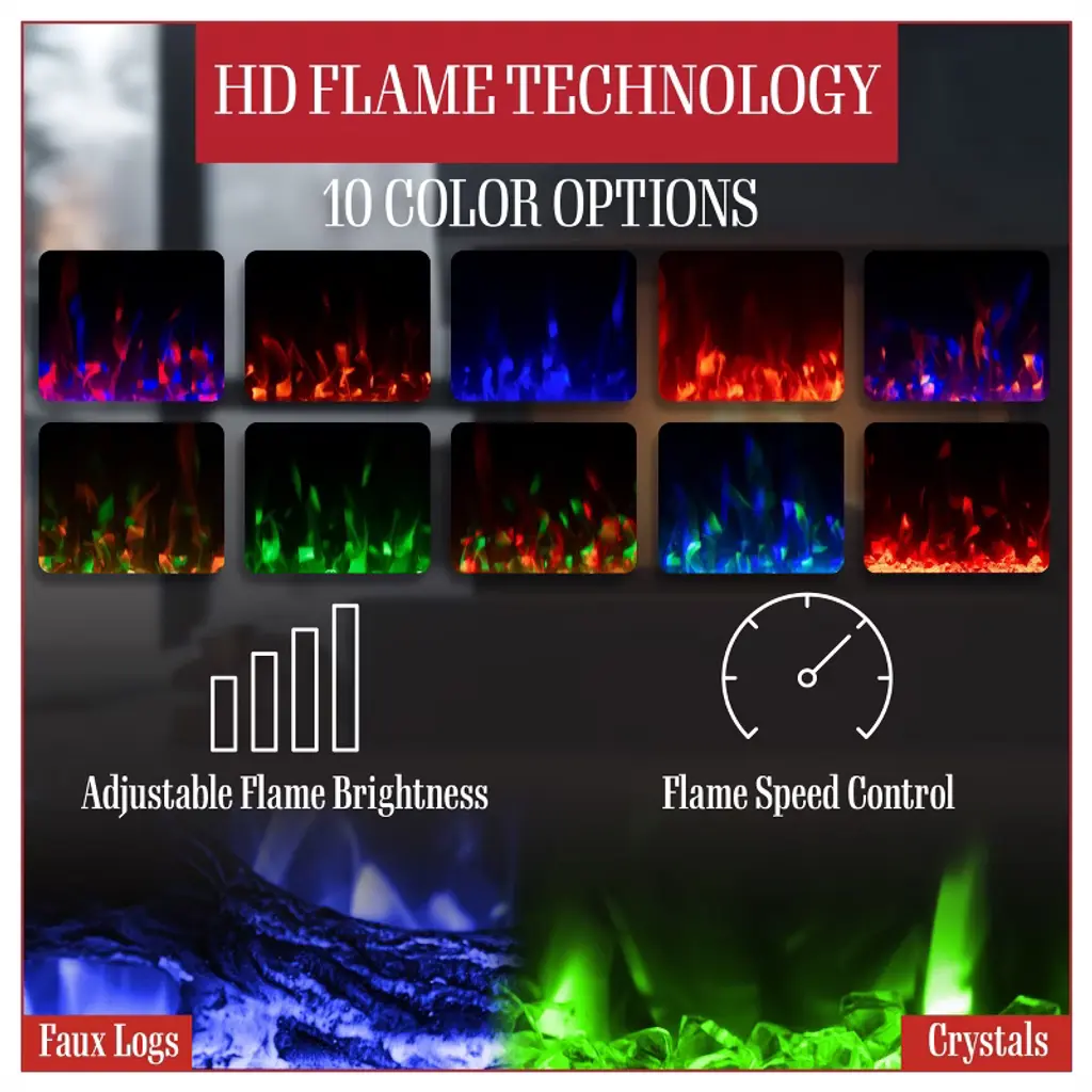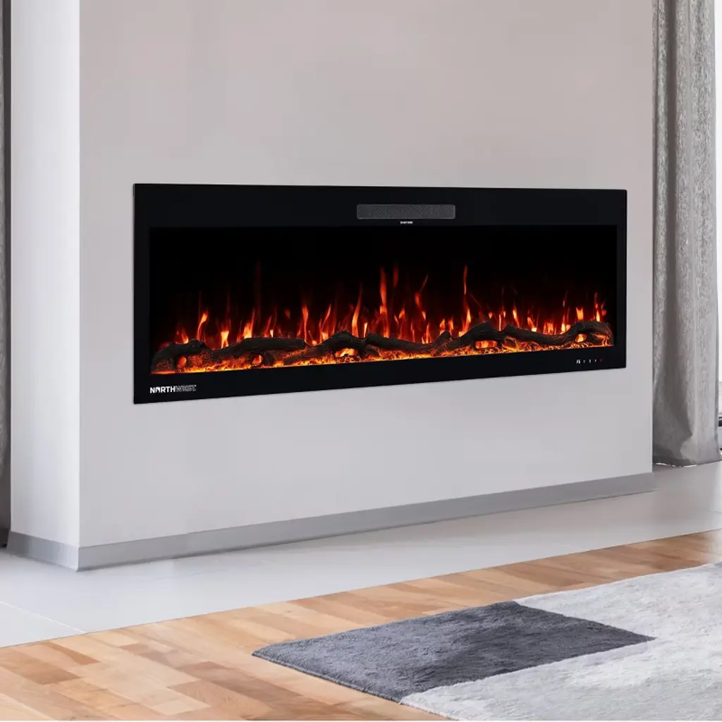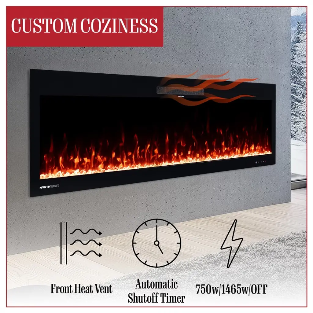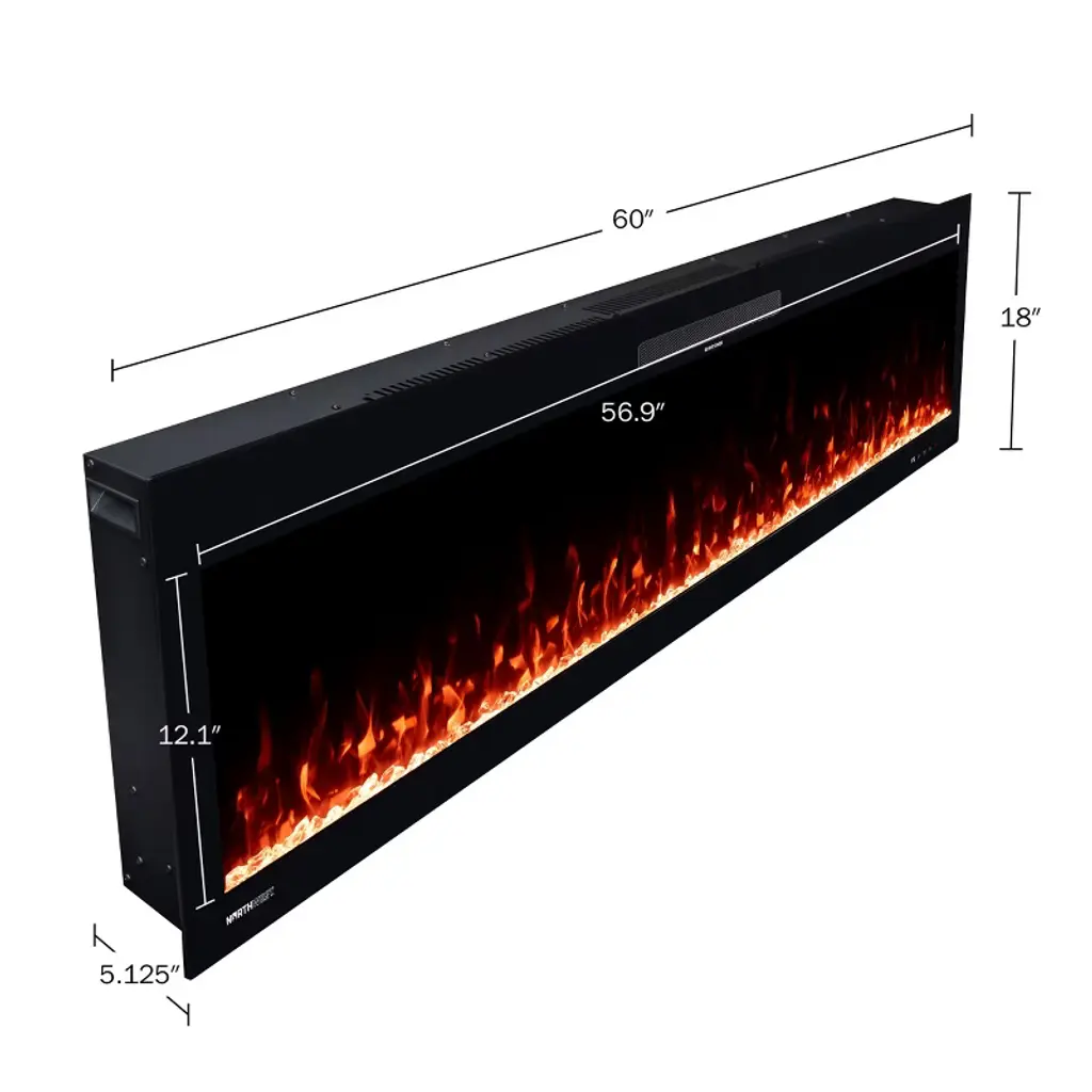 Bring the beauty and warmth of a real fireplace into your living space without any of the mess with the 60-Inch Wall Fireplace Electric with Remote Control by Northwest. This faux fireplace includes a remote control that lets you power the unit on and off, change between low (750W), high (1500W), and no heat settings, set a 30-minute to 8-hour automatic shutoff timer, switch up the color-changing effects, adjust the brightness of the flames, or control the flame speed from anywhere in the room. The versatile fireplace insert includes mounting hardware for easy wall mounted or recessed installation below your mantle or on your bedroom wall, making it a great addition to any space as functional room decor.