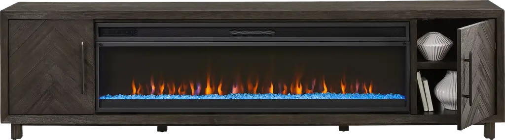 Oakleigh Charcoal 96 In. Credenza With Electric Fireplace