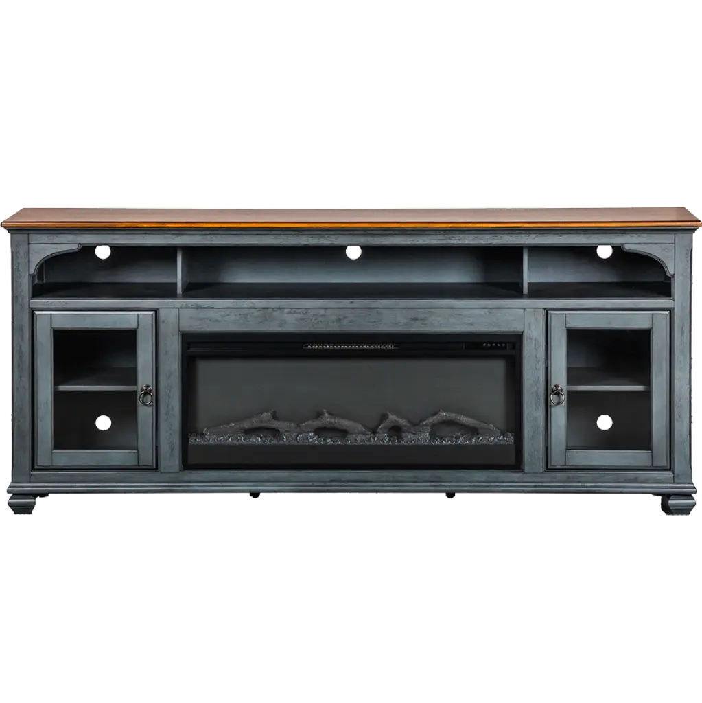 Oakwood Terrace Sand 80 In. Console With Electric Log Fireplace
