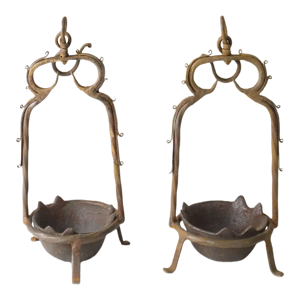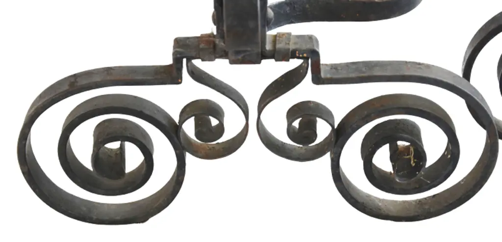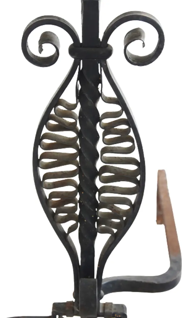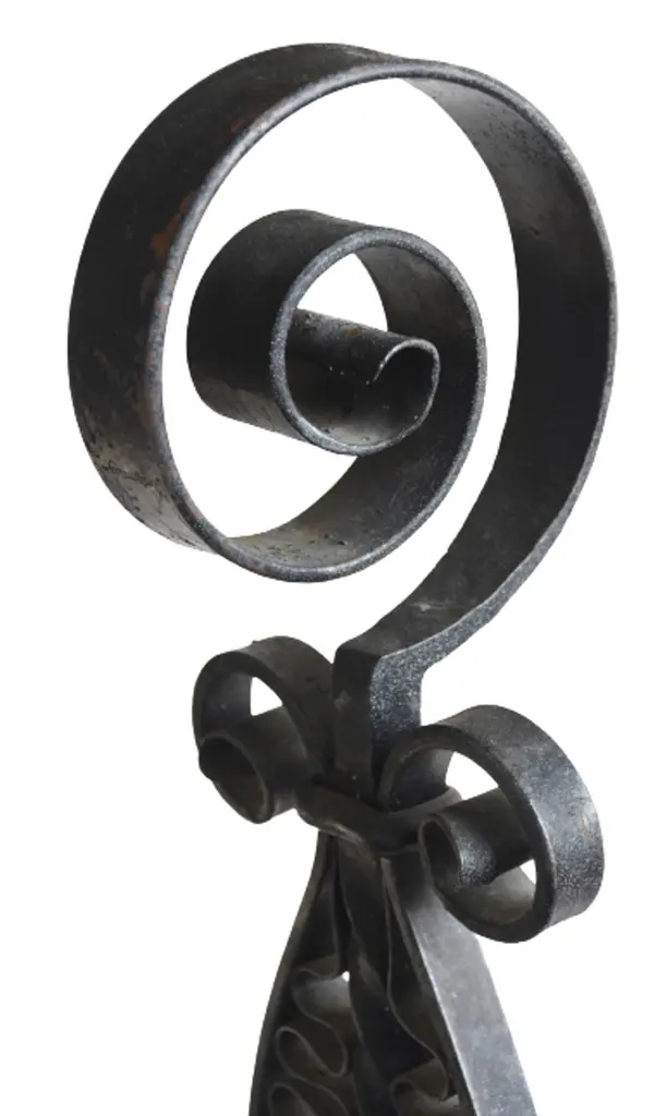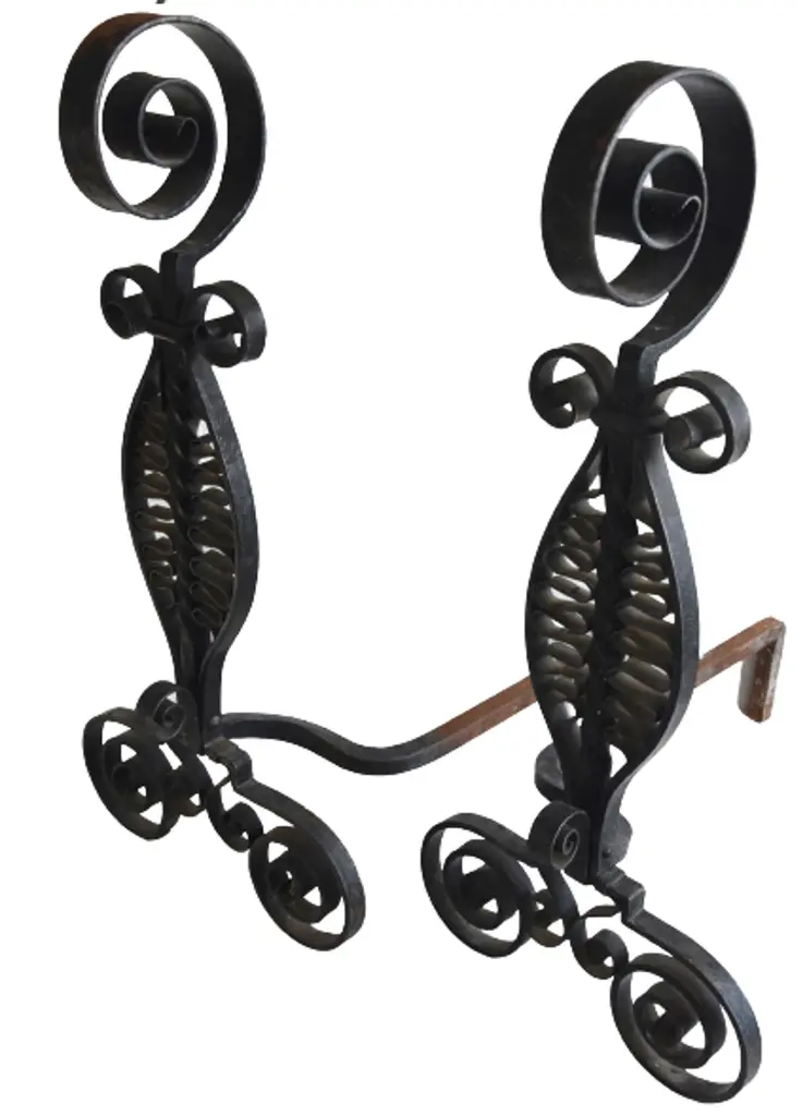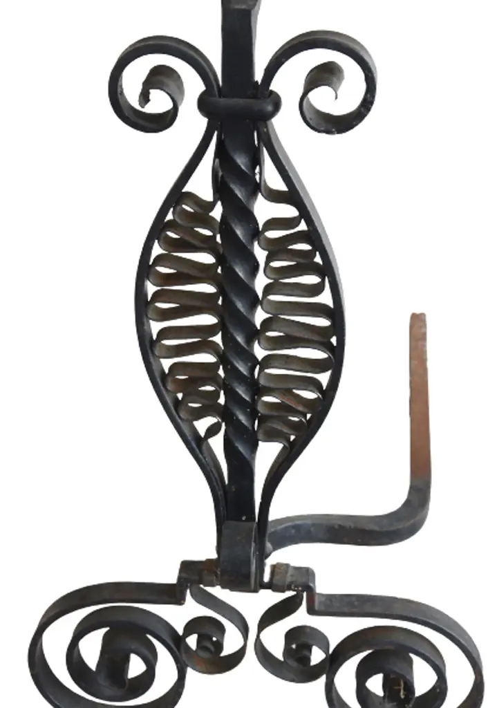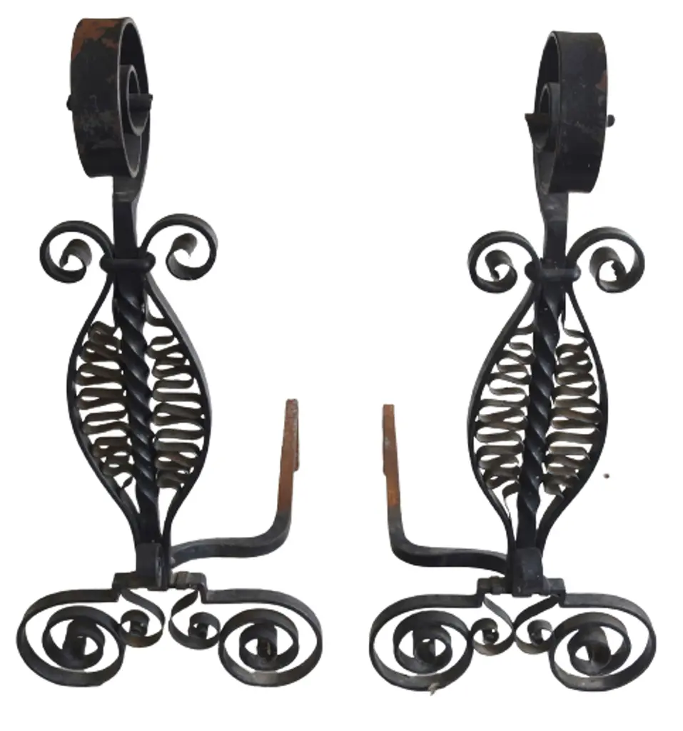 Pair of large vintage hand-wrought iron fireplace andirons. No maker's mark. Excellent vintage condition.