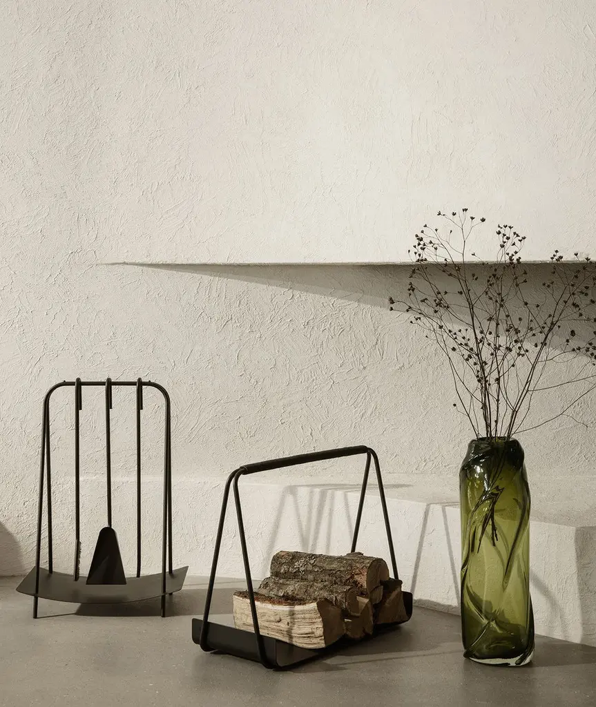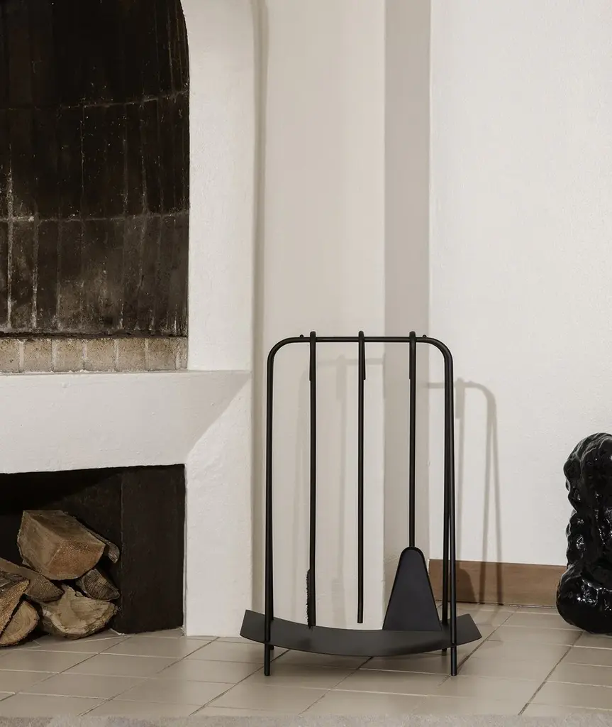 Inspired by jewelry, this set of tools brings out the best in your fireplace. With organic shapes and delicate lines, the powder coated steel or solid brass ensemble helps you tend to the fire in style. Merging functionality and aesthetics the set lightens up the area around your hearth or fireplace. The set includes a stoker, spade, a broom, and the stand.