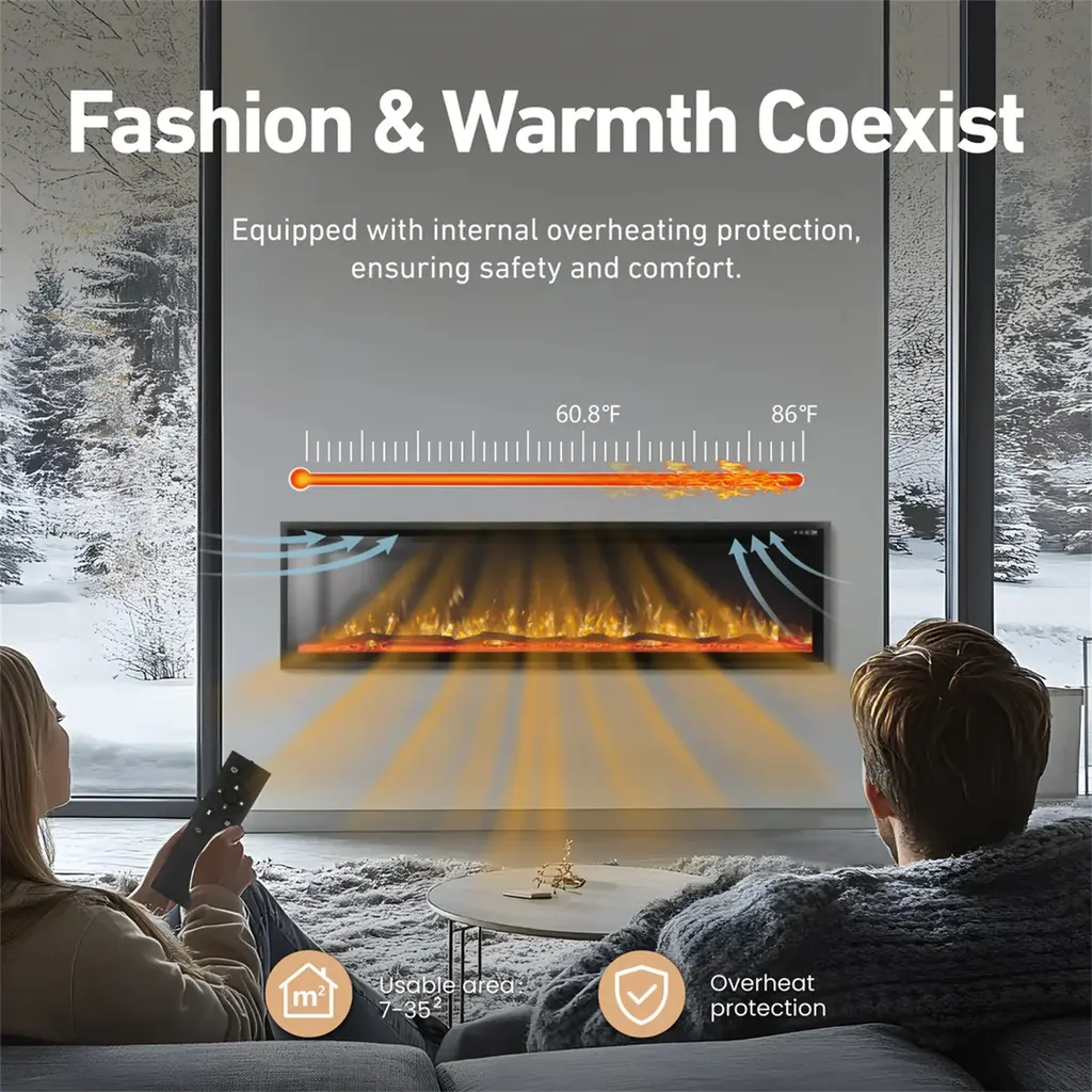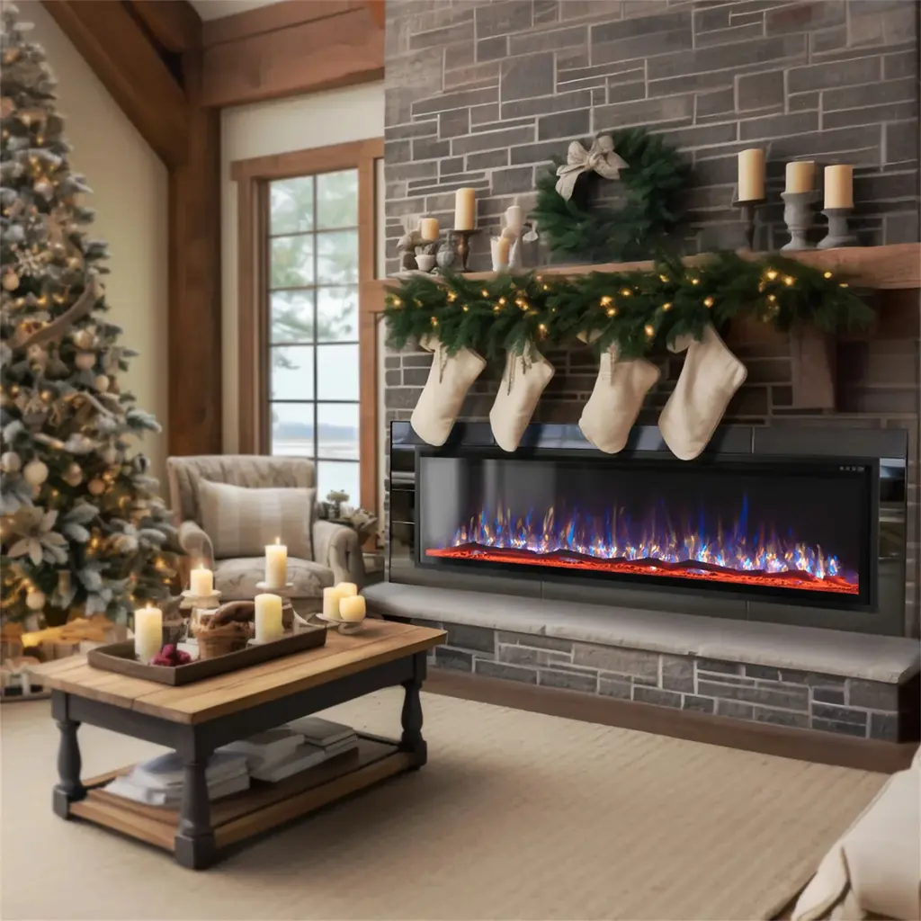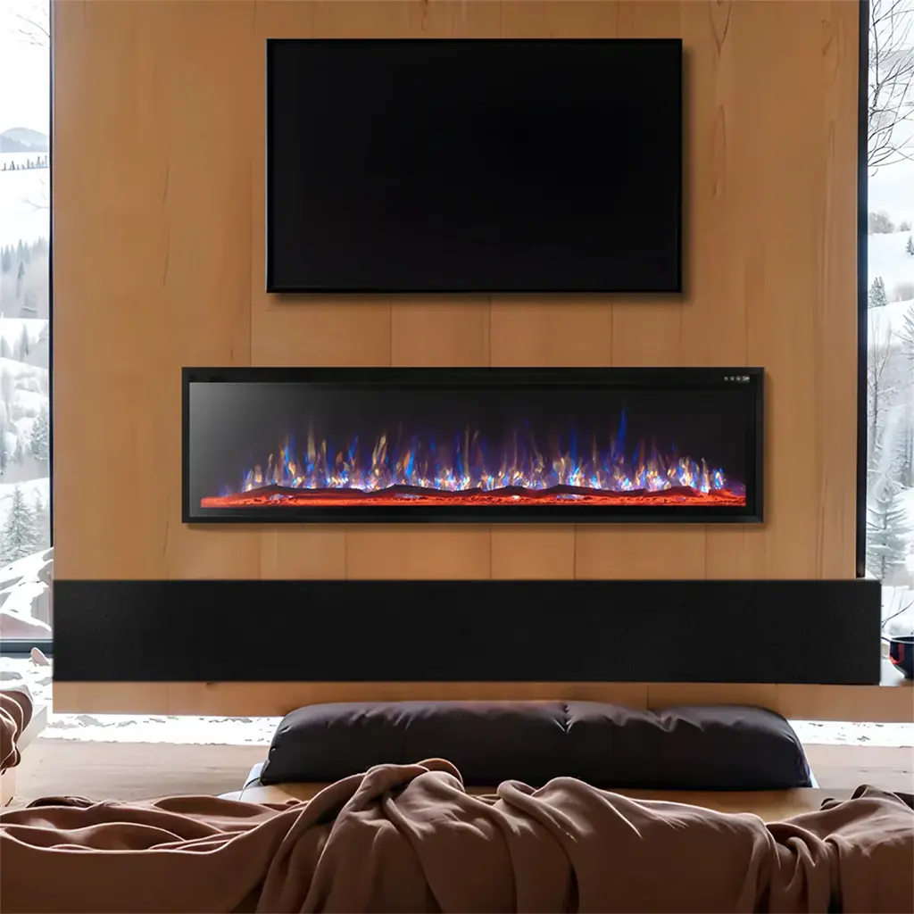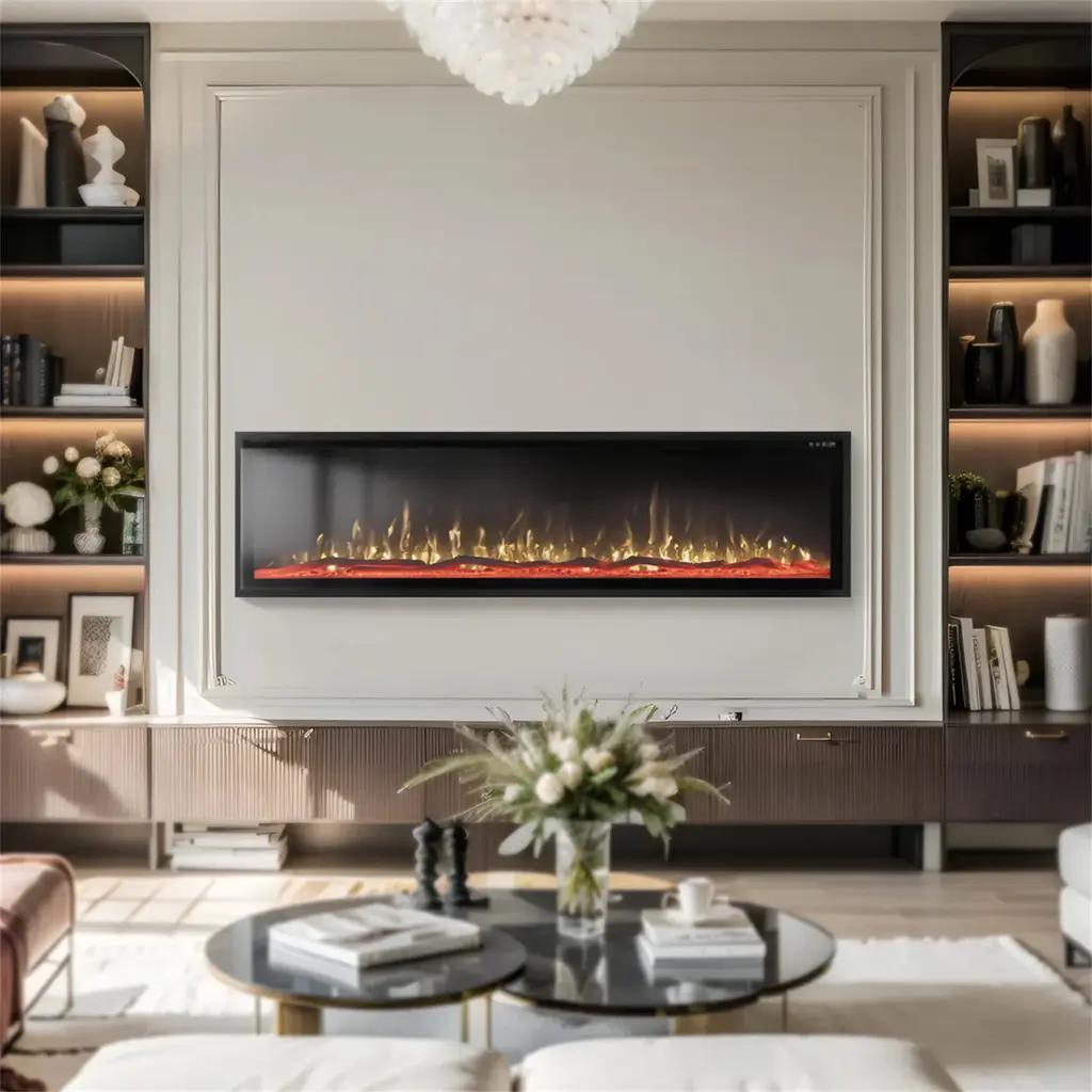 Create a warm and inviting atmosphere with our sleek electric fireplace, designed with an ultra-narrow bezel that beautifully showcases its lifelike flames. Featuring 7 customizable flame colors and 12 carbon bed options, this fireplace transforms any space into a cozy retreat, perfect for intimate gatherings or quiet evenings. Experience the enchanting dance of the flames as they cast a soft glow, encouraging relaxation and connection with loved ones. With its modern elegance, this fireplace becomes the focal point of your home, fostering an ambiance of comfort and tranquility.