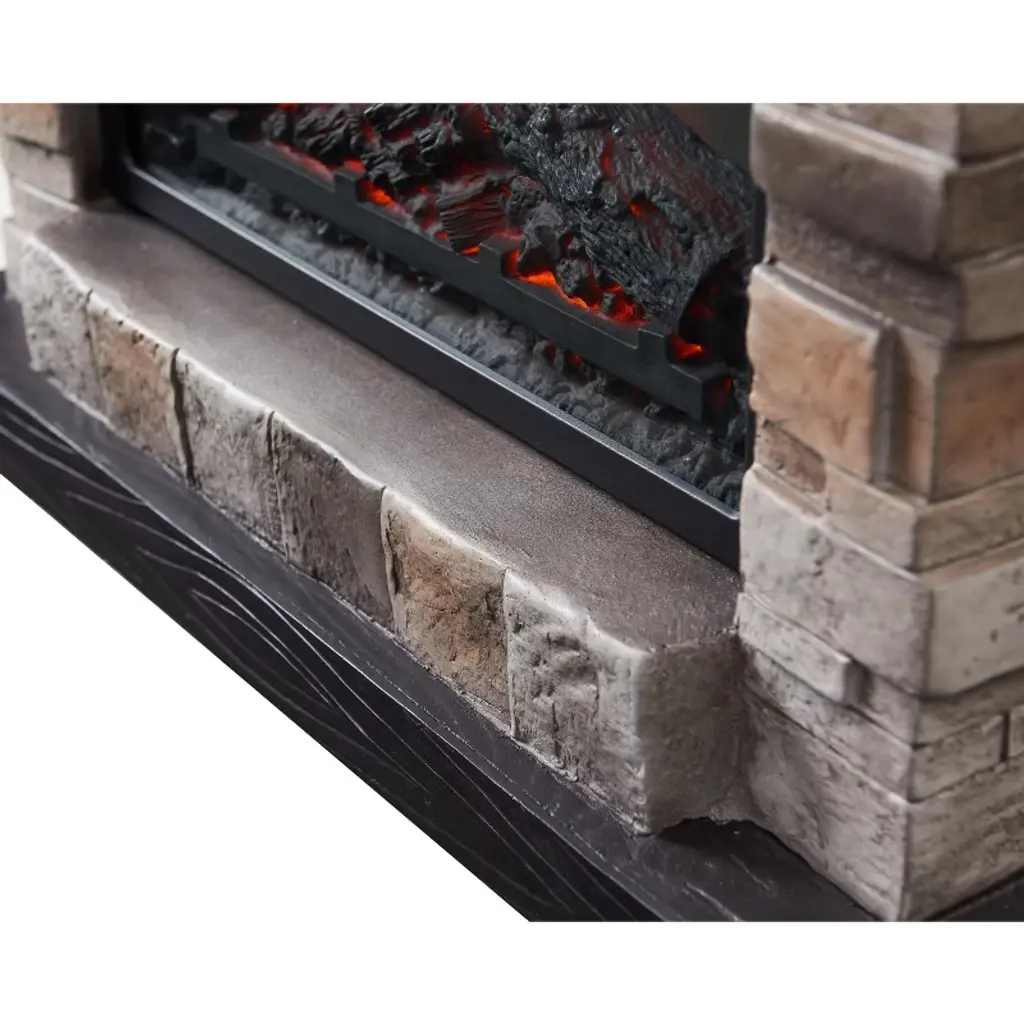This electric fireplace combines modern technology with classic design. Made from eco-friendly MGO, it features a realistic wood and stone look. No assembly required—just plug in and enjoy the cozy flame with or without heat. Remote and touch controls plus an ultra-quiet DC motor ensure comfort and convenience.