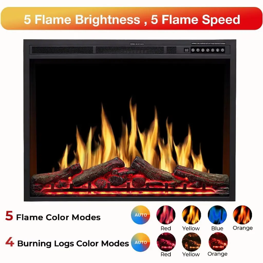 R.w.flame 34 Inch Electric Fireplace Inserts With Adjuatble Flame Colors, Flame Speed And Brightness, Remote Control & Time
