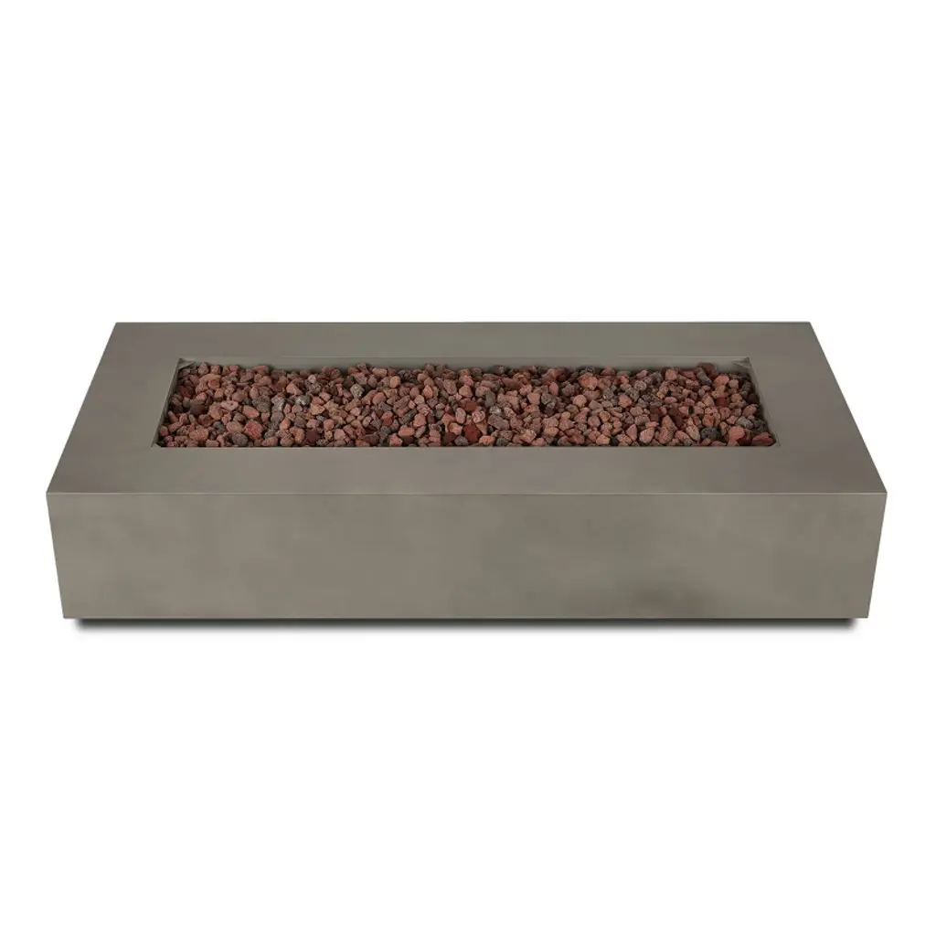 Make a stunning addition to your outdoor space with the clean, contemporary design of the Aegean 70" Rectangle Propane Fire Table. Low and linear, this large steel fire pit has a light textured finish and features a reliable push button ignition. When not in use, transform this fire feature into a useful coffee table with the included matching lid. Rated at 65,000 BTUs of heat, this extra large rectangle outdoor fire pit burns propane, but can be converted to natural gas by a certified natural gas technician using the included NG conversion kit. Create a beautiful outdoor entertainment space or upgrade your backyard with the low-profile and minimal style of this rustic, gray fireplace. Includes fire table with leveling feet, stainless steel burner, burner lid, rust brown lava rock, tank seat, 10' LP hose and regulator, and vinyl storage cover Available in a mist gray or weathered slate finish. At Real Flame, we are committed to providing safe, high-quality, beautifully designed and affordable fire pits, fire tables and outdoor fireplaces. Product Details: Aegean 70" Rectangle Propane Fire Table by Real Flame, 69.75"L x 31.75"W x 14.5"H; 159 lbs, color: weathered slate