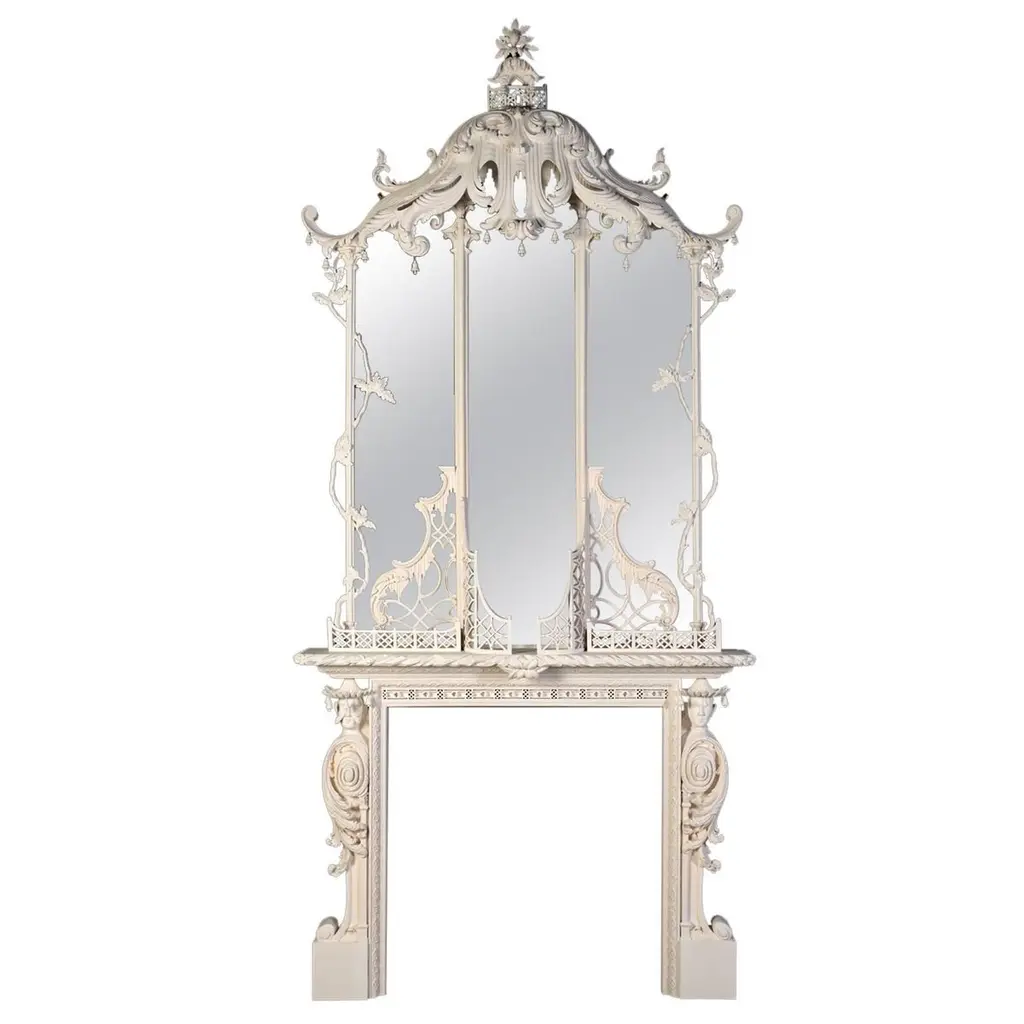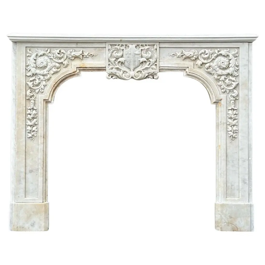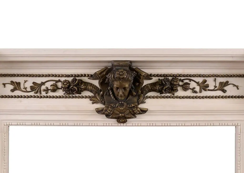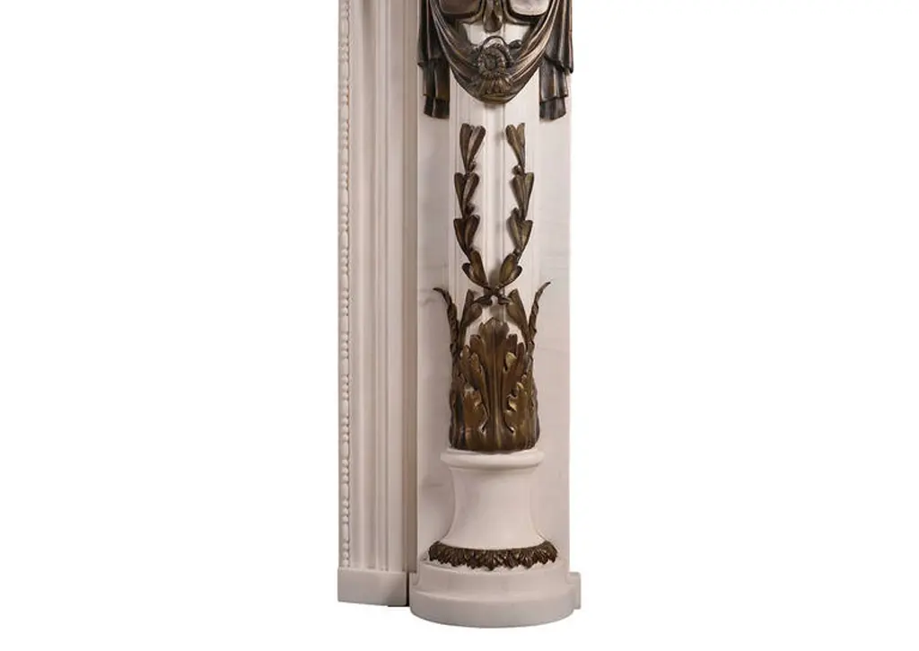 Regency Style White Marble Fireplace Mantel With Bronze Adornments