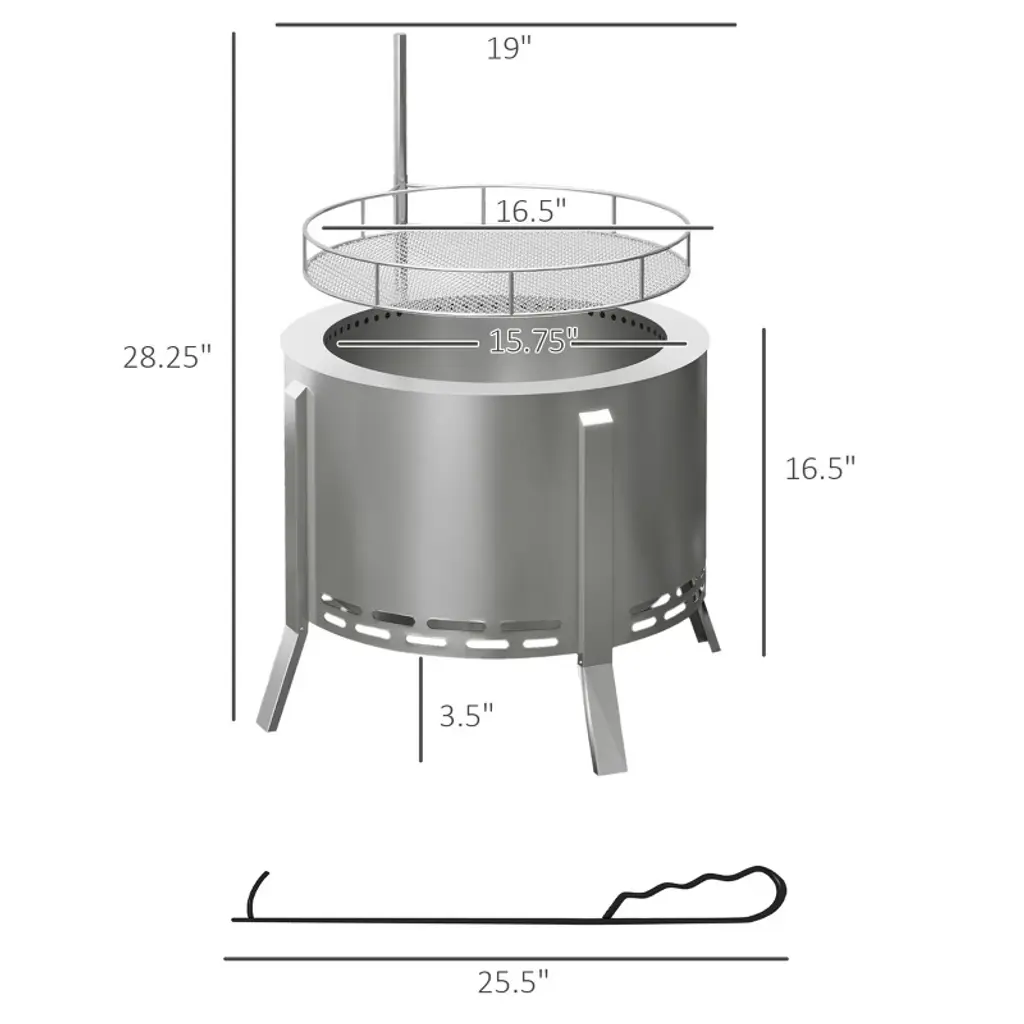 Create cozy outdoor moments with this smokeless wood-burning fire pit featuring advanced secondary combustion technology that minimizes smoke for a more comfortable experience. The included grill grate expands its functionality beyond warmth, letting you cook over an open flame when desired. Designed with a practical ash catcher for easy cleanup and built from durable powder-coated stainless steel, this patio-ready fire pit delivers reliable performance across all seasons.