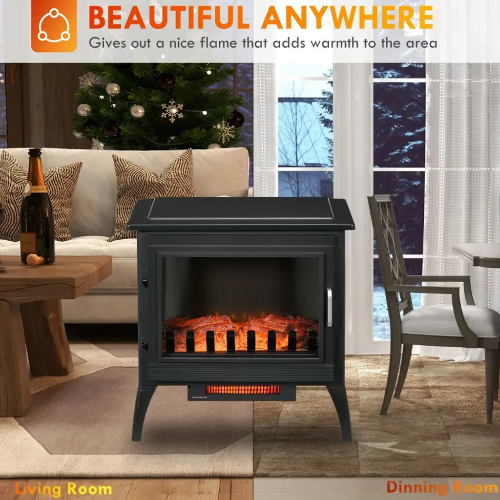 Create a warm and inviting atmosphere in your home with this safety-certified electric fireplace, featuring dual protection systems and a stunning three-sided flame display. Designed to enhance your living space during cooler months, the fireplace delivers comforting warmth to areas up to 400 square feet while offering versatile placement options with its removable foot. The panoramic flame viewing lets you enjoy the seasonal ambiance from any angle.