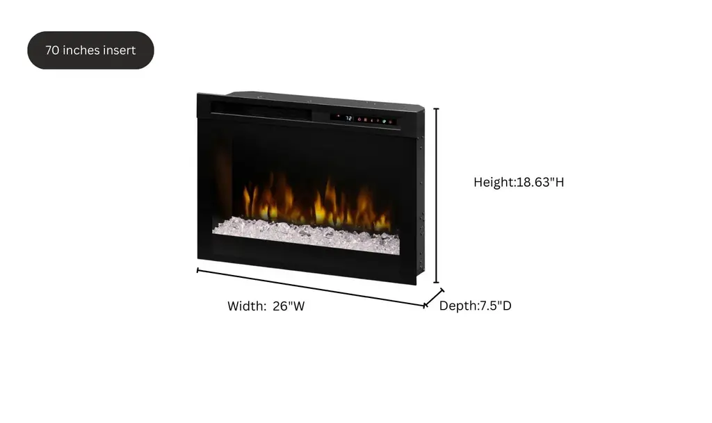 Elevate your living space with the Starburst Console featuring the advanced Prism Series electric linear fireplace from Smart Furniture. Designed for versatility and functionality, it showcases a vibrant flame effect with RGB color options, illuminating a diamond-like acrylic ice ember bed. Perfect for creating ambiance and warmth, it features an efficient fan-forced heater capable of heating spaces up to 400 sq. ft. The fireplace offers flexible installation options—plugged in or hard-wired, wall-mounted, or built-in—to fit any room layout. Equipped with energy-efficient LED technology, it operates at 120 volts with a power output of 1,230 watts, delivering up to 4,198 BTUs. The multi-function remote control provides seamless operation, while the sleek design complements modern interiors. Whether used for ambiance or supplemental heating, the Starburst Console with adjustable flames combines style, comfort, and convenience for your home. Fireplace Insert comes along with the Console.