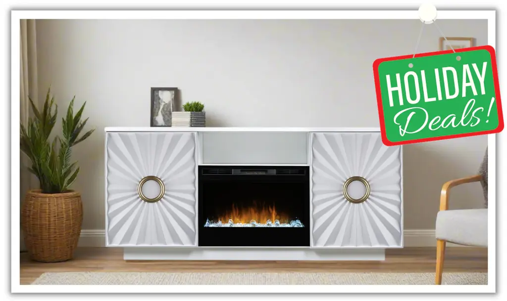 Smart Furniture Sunrise Console With Electric Fireplace And Open Shelve