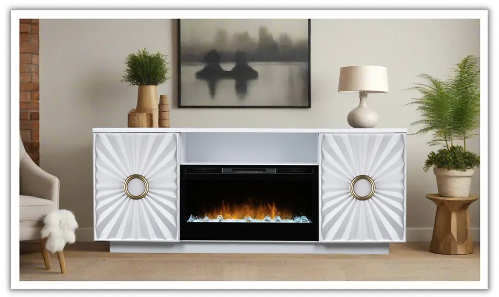 Smart Furniture Sunrise Console With Electric Fireplace And Open Shelve