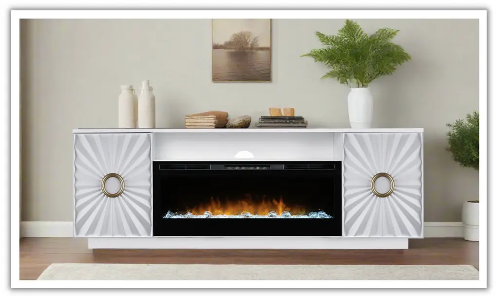 Smart Furniture Sunrise Console With Electric Fireplace And Open Shelve