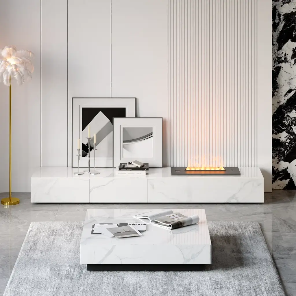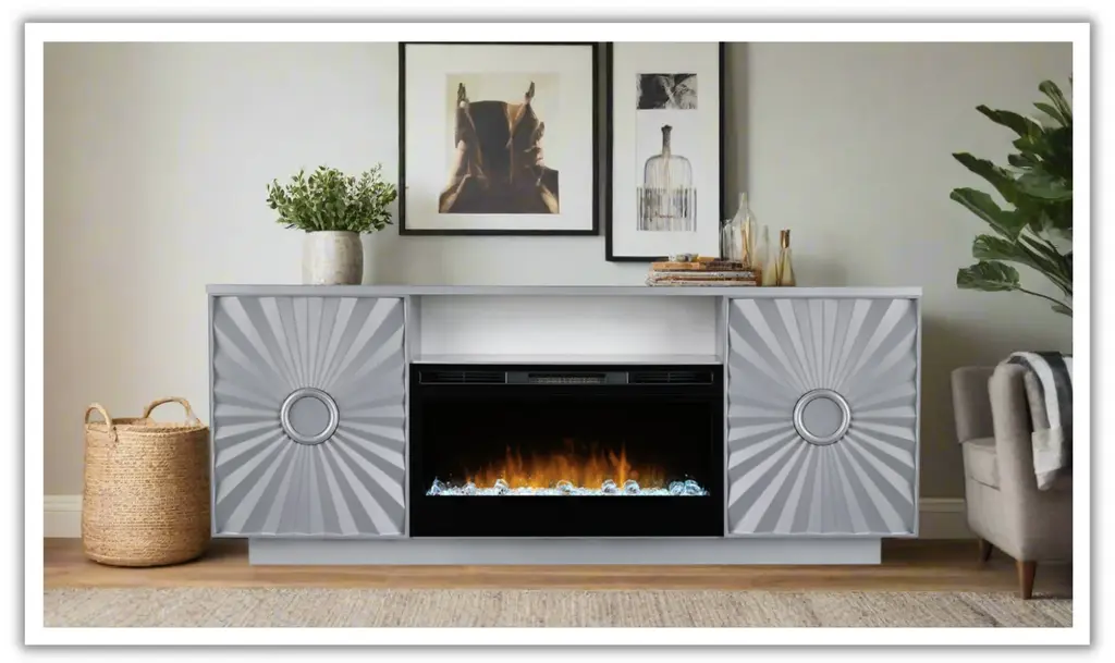 Smart Furniture Sunrise Console With Electric Fireplace And Open Shelve