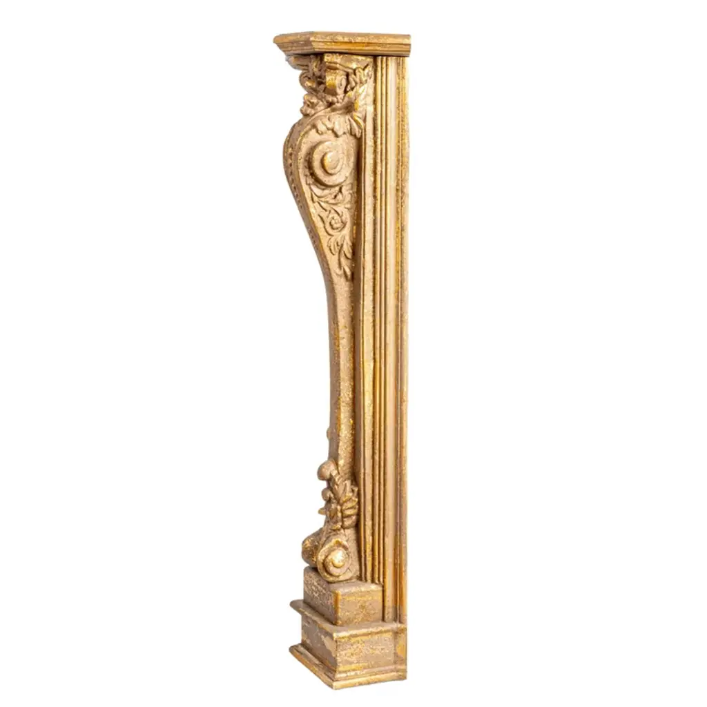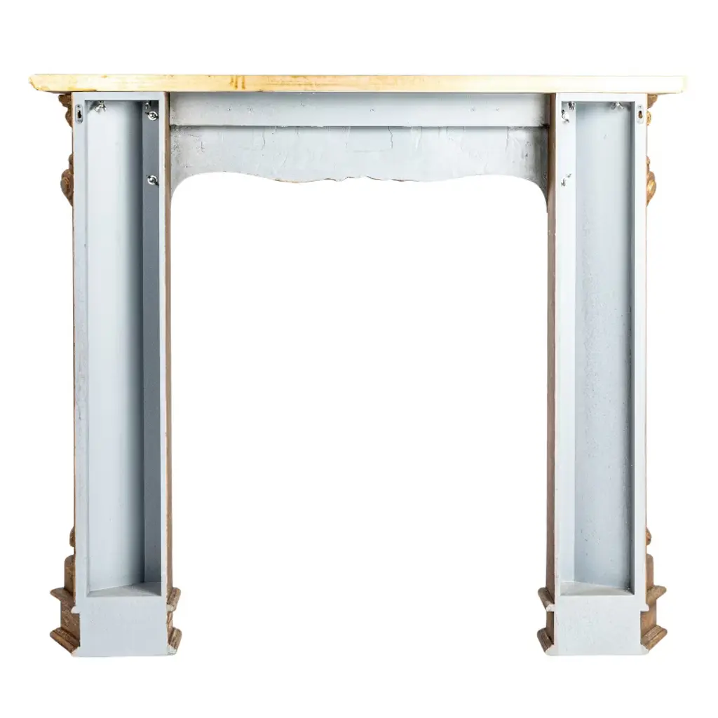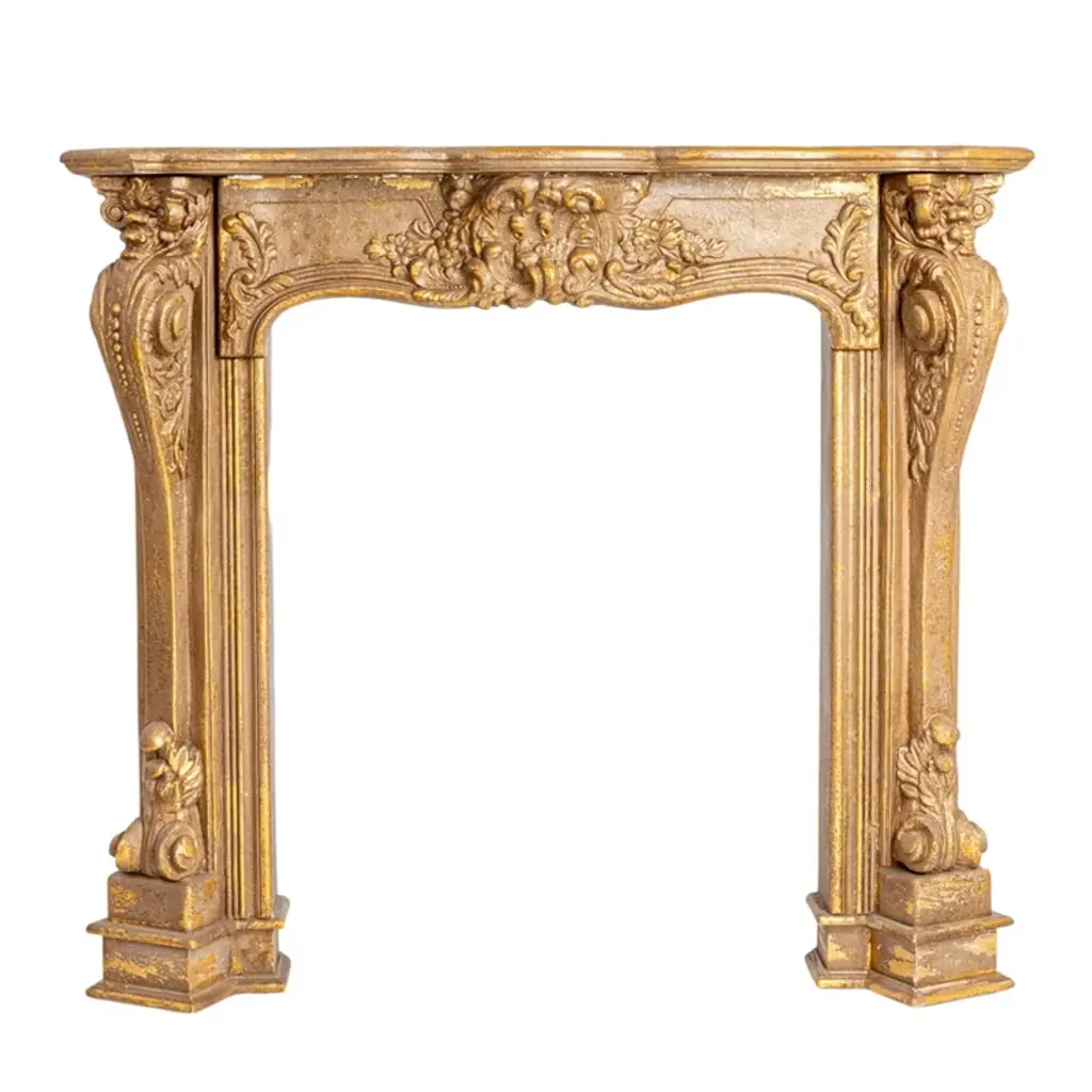 Add a bit of grandeur to your space with this Distressed Gold Wood Fireplace Mantel. This decorative mantel surround is a masterpiece of design, crafted with wood and adorned with hand-sculpted magnesia details. With a stunning gold finish that captures the essence of Victorian style, the silhouette and intricate details evoke a sense of history and craftsmanship. It measures 55.1 inches in length, 10.9 inches in width, and 48.4 inches in height, with an opening of 32.5 x 39 inches. The fireplace mantel requires minimal assembly.