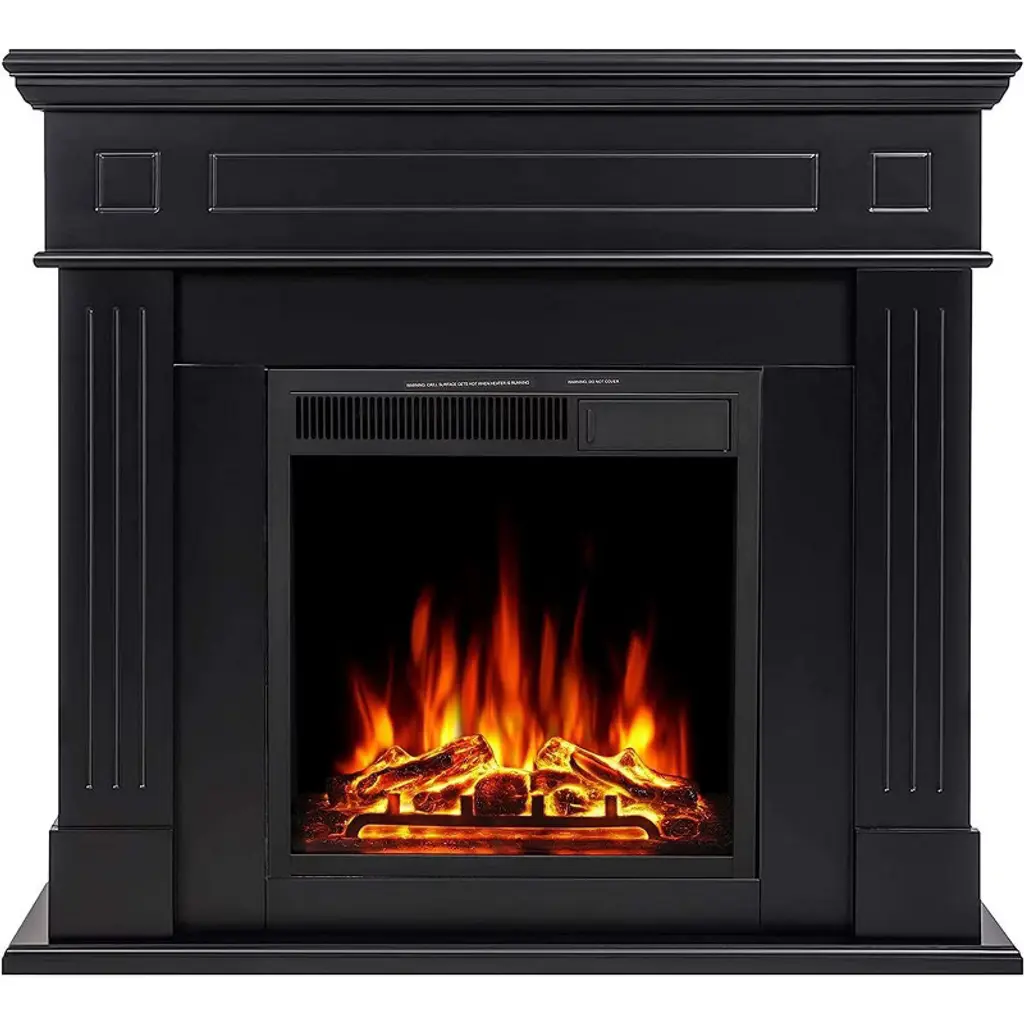 The Thayer electric fireplace is a fresh take on a traditional design, with clean linear details and a crisp, well-defined mantel. The Real Flame® VividFlame™ electric firebox mimics the look of a real, flickering fire, but does not require a chimney or vents and conveniently plugs into a standard outlet. This free-standing indoor fireplace has a mantel with a real wood finish and features six flame colors, five flame brightness levels, adjustable thermostat, timer function and automatic safety shut-off. The electric fireplace insert provides supplemental heat for rooms up to 1,000 sq ft or the heater can be turned off so you can enjoy the comforting ambiance of a glowing fireplace year-round. Mantel, firebox with log set, hardware and remote control are included.