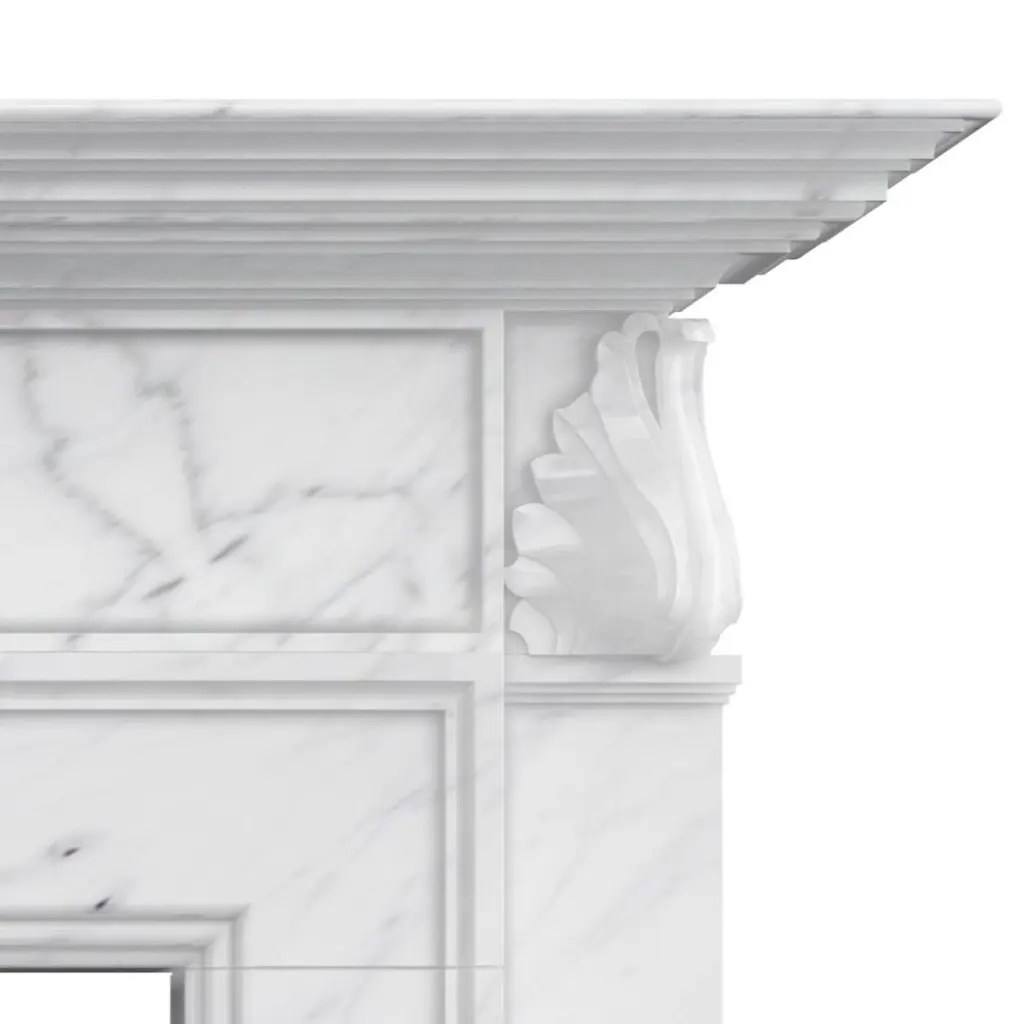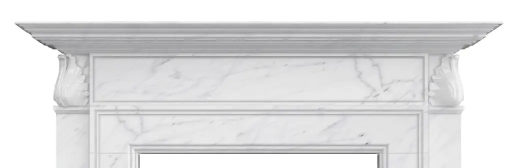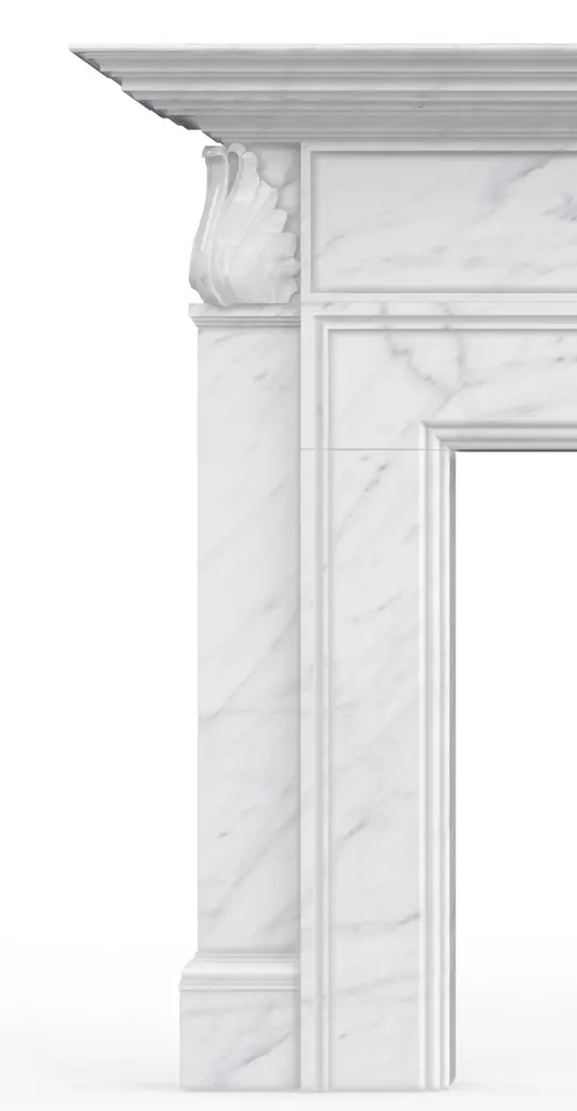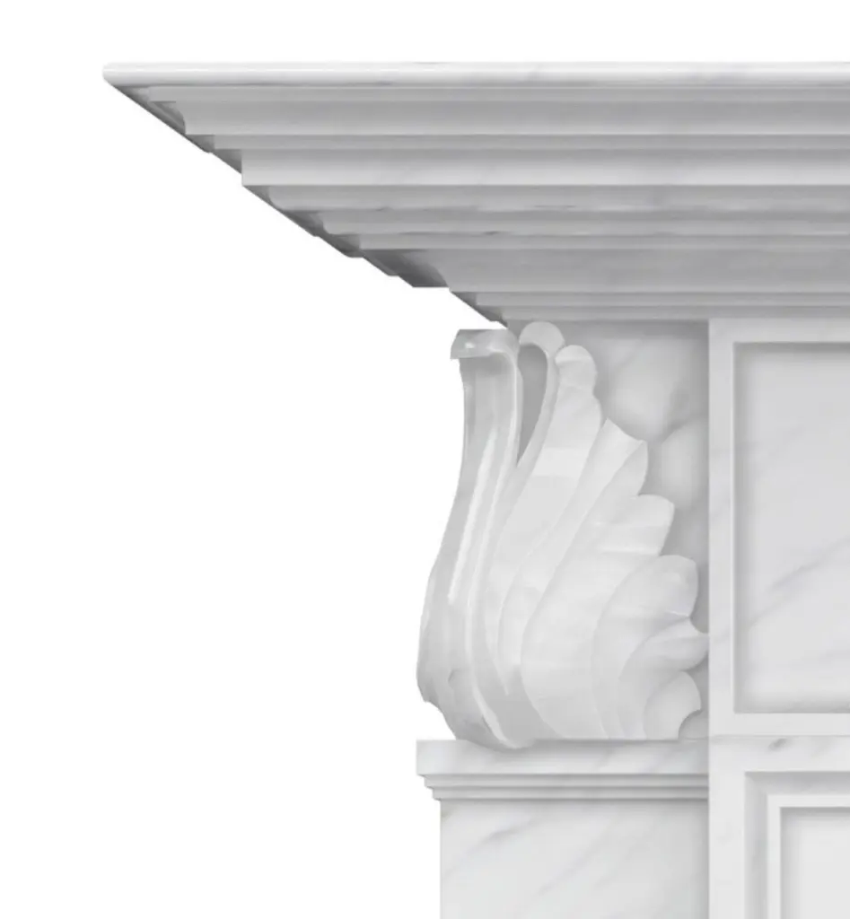The Simone: A Classically-Inspired Stone Fireplace With Carved Leaf Detail
