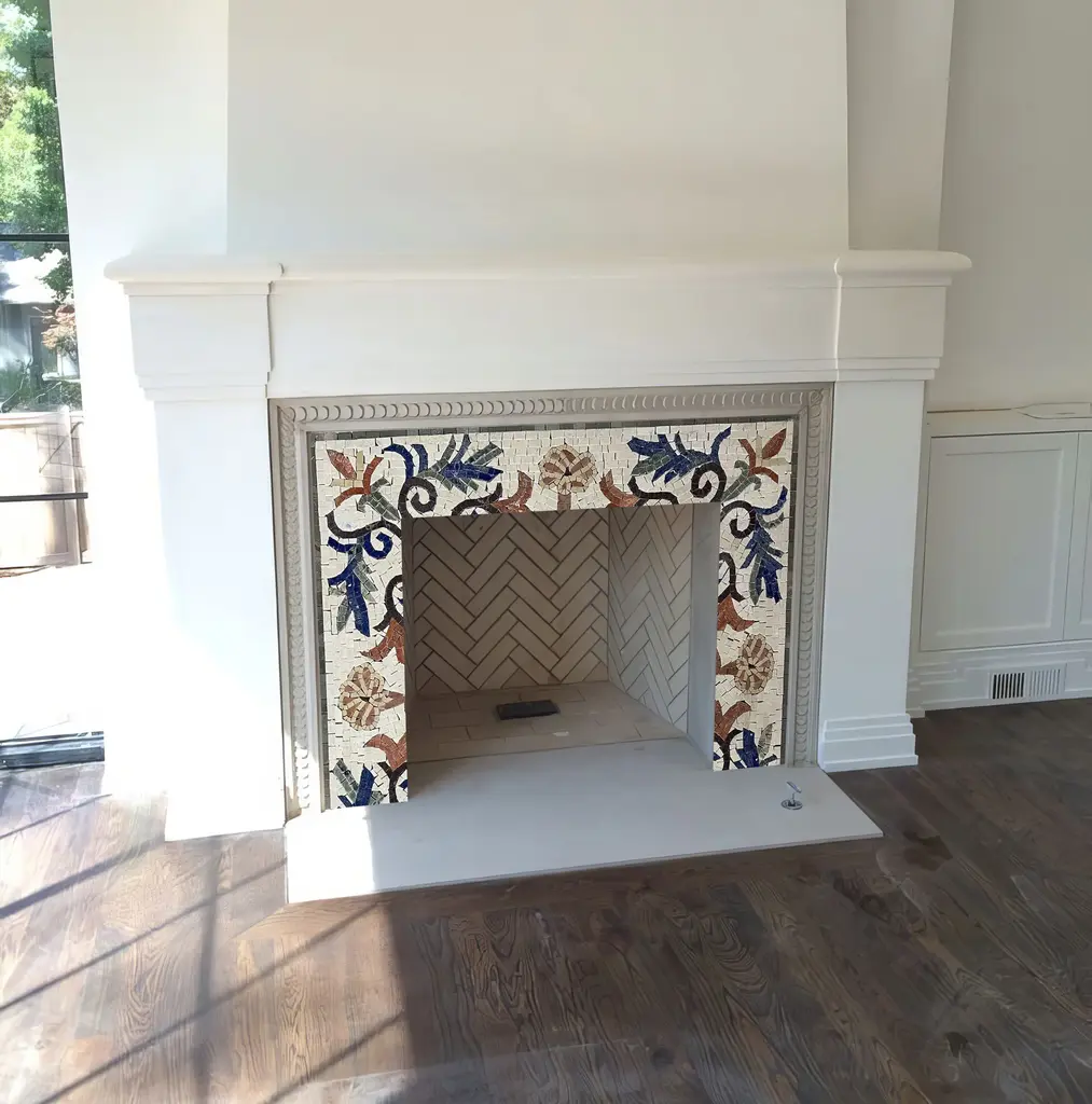 Tile Mosaic Fireplace - Floral Stone - Hearth