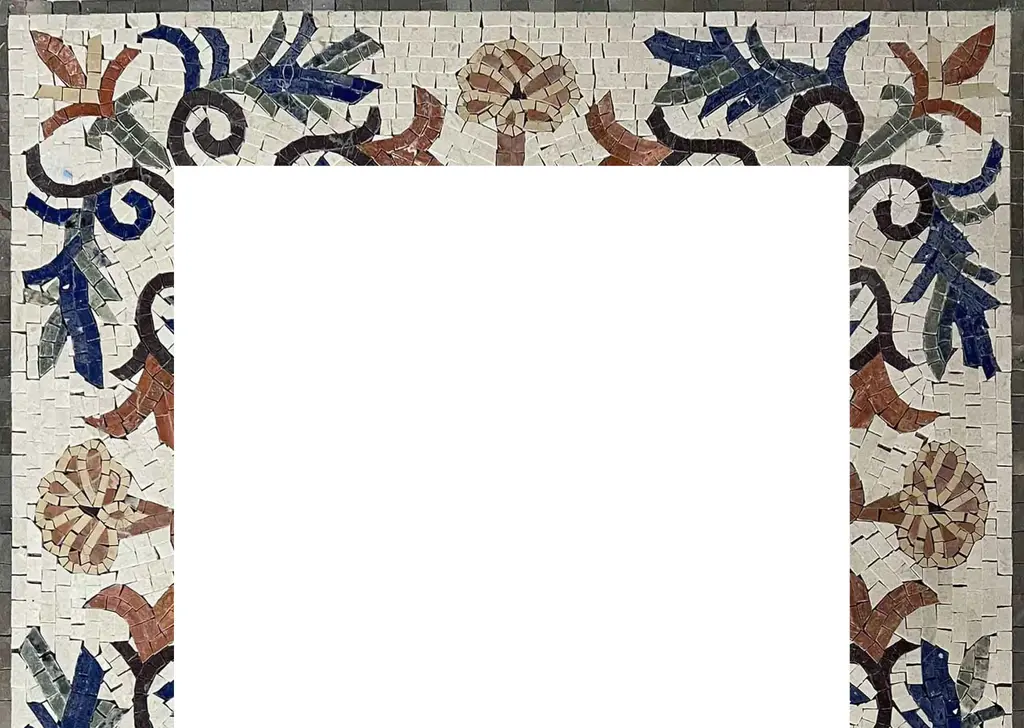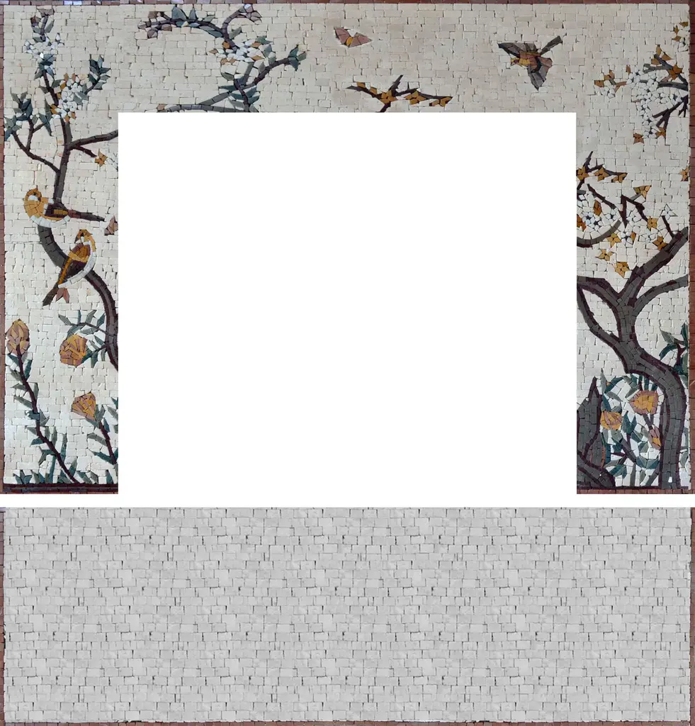 Tile Mosaic Fireplace - Floral Stone - Mantel + Hearth