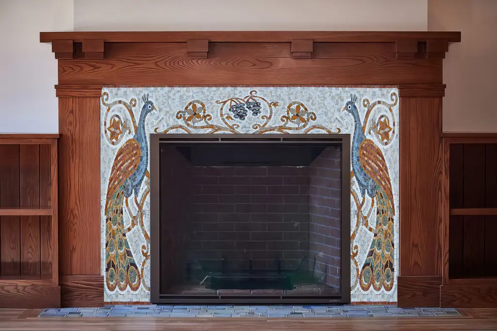 Tile Mosaic Fireplace - Peacock Art - Hearth