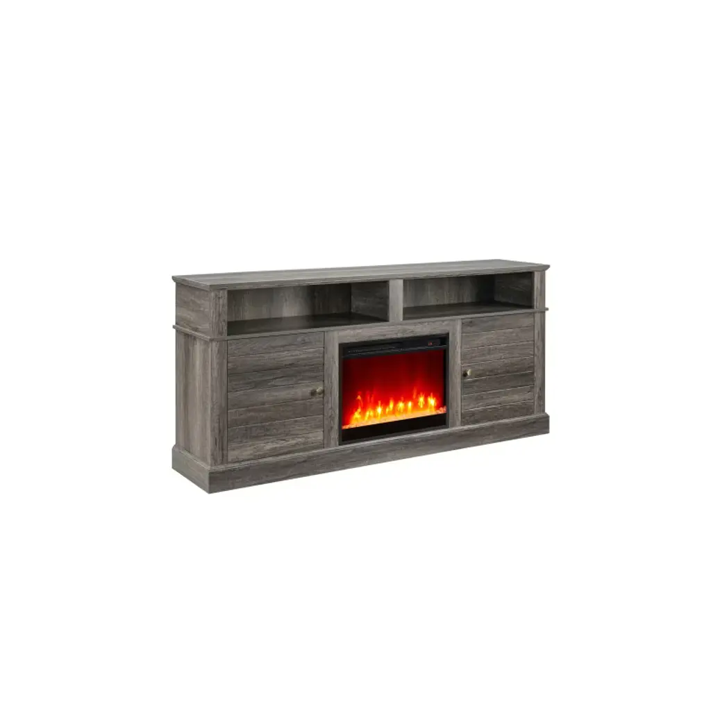 Tobili 70"w Gray Walnut Finish Tv Stand Console With Fireplace And Heater