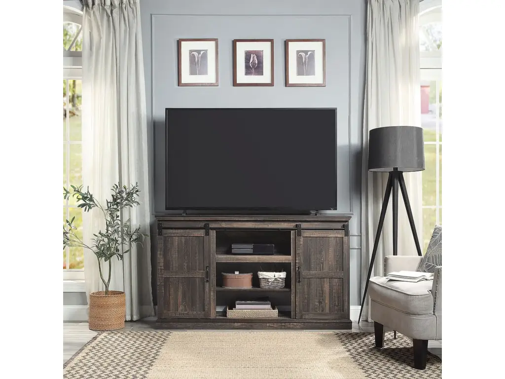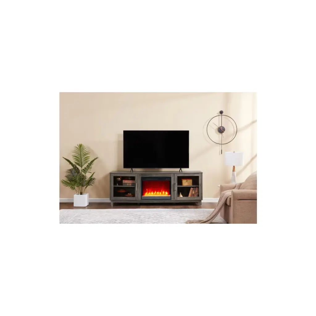 Tobili 70"w Gray Walnut Finish Tv Stand With Fireplace And Heater