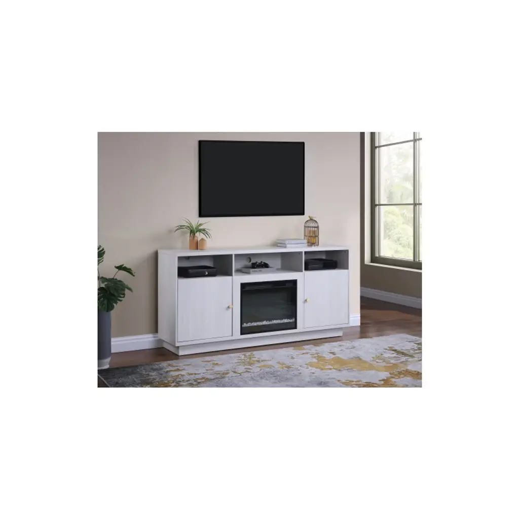 Tobili 70"w White Walnut Finish Fireplace Tv Stand With Heater,led Light, Cabinets,shelves