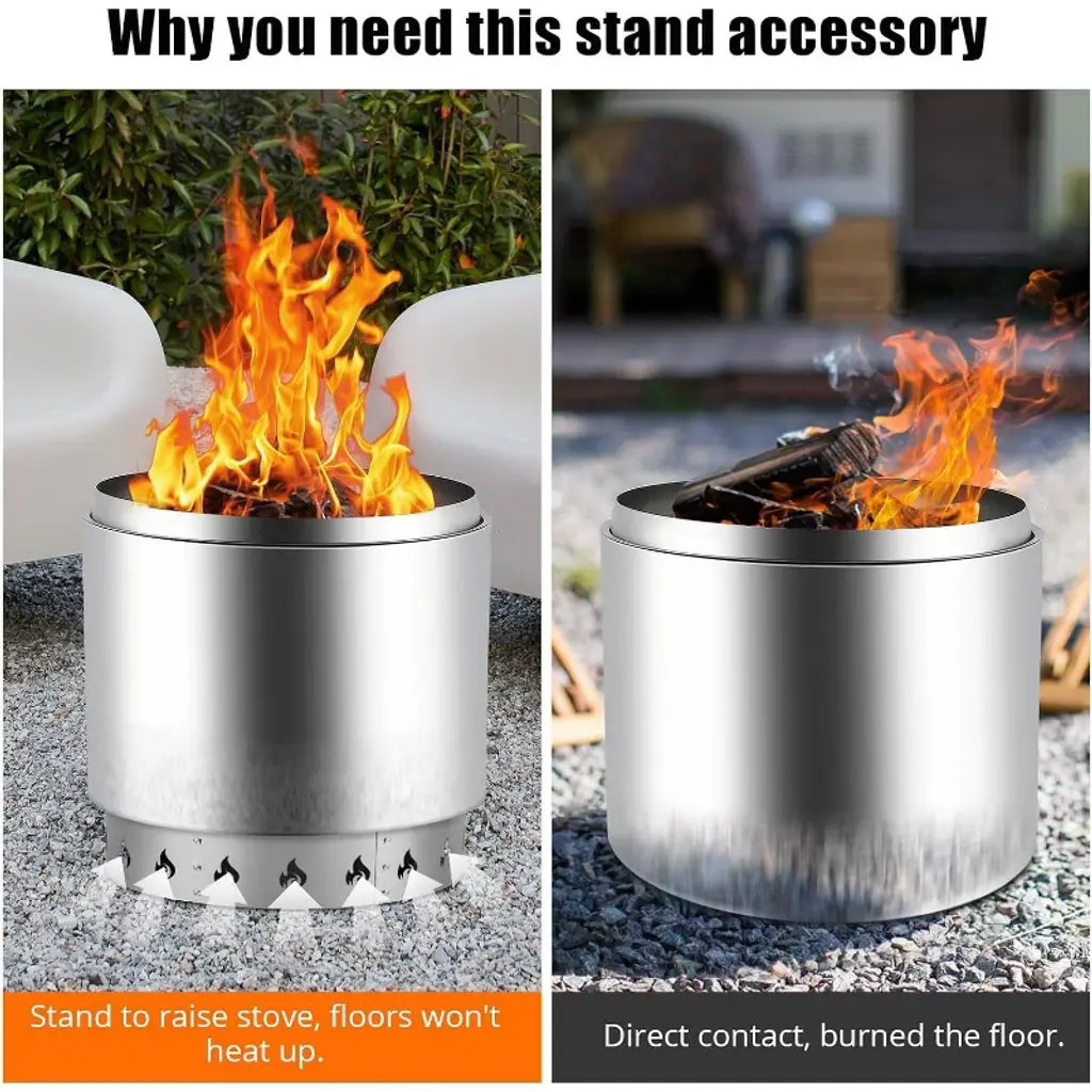 Premium 27" Fire Pit Stand - Heavy Duty 304 Stainless Steel Base for Outdoor Fire Pits & Camping (Silver, 23.3"x23.3")Premium Features:Industrial-Grade StabilityHeavy-duty 304 stainless steel construction3.4 lb weighted base prevents tippingNon-slip rubber feet for added securitySupports fire pits up to 150 lbs capacityOptimized Airflow DesignMulti-ventilation system improves combustionElevates fire pit 3.9" for proper oxygen flowReduces heat transfer to sensitive surfacesPrevents smoke buildup around fireUniversal CompatibilityFits most 27" diameter outdoor fire pitsWorks with wood-burning and gas fire pitsIdeal for patios, decks, and grass surfacesSuitable for camping and RV useAll-Weather DurabilityRust-resistant 304 stainless steelWithstands temperatures up to 1200¡ãFPowder-coated silver finishResists corrosion in all climatesPortable & Easy SetupLightweight 3.4 lb designNo assembly requiredCompact 14.17"D x 6.3"W x 4.92"HIncludes carrying handleTechnical Specifications:Brand: TROPOWMaterial: 304 Stainless SteelColor: SilverDimensions: 23.3"L x 23.3"W x 3.9"HWeight: 3.4 lbsLoad Capacity: 150 lbsSurface: Textured non-slipTemperature Resistance: 1200¡ãFIncluded: 1 fire pit stand
