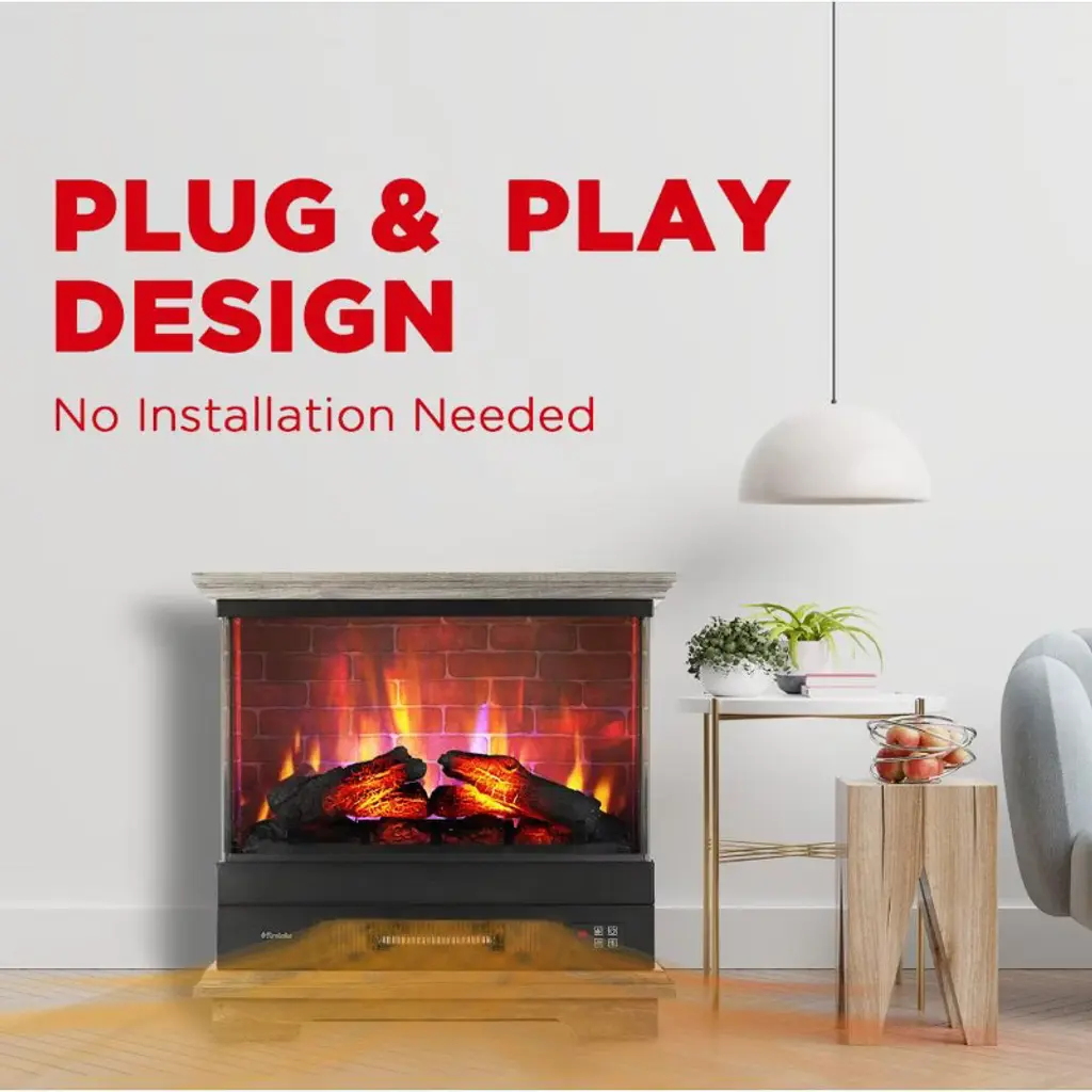 Turbro Firelake 27-inch Electric Fireplace Heater, Freestanding Fireplace With Mantel