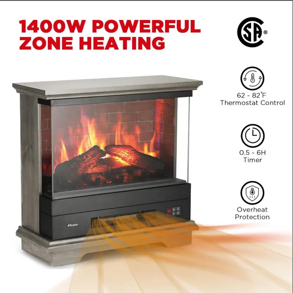 Delicate Home Decor: With a modern and classic combination wood box surrounded, the FL27-BW fireplace not only delivers warmth but also adds a touch of elegance to your room. With a three-sided glass, you and your family can enjoy the ambiance of dancing flames from any view in the room. Efficient Zone Heater: Firelake 1400W heater provides efficient supplemental zone heating for a small living room, bedroom, dining room, etc. The temperature can be adjusted from 62 - 82℉ and you can also use the 6-Hour timer function to program the running time of the heater.