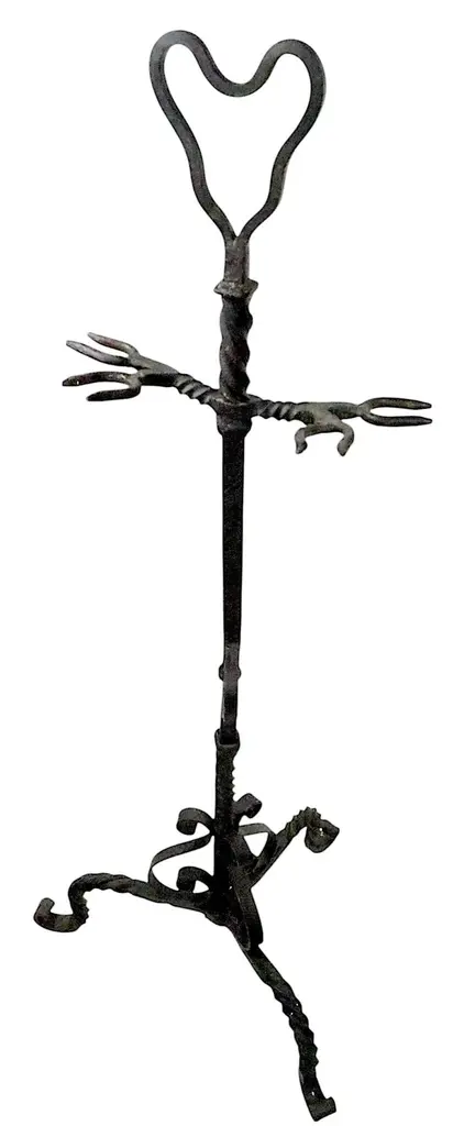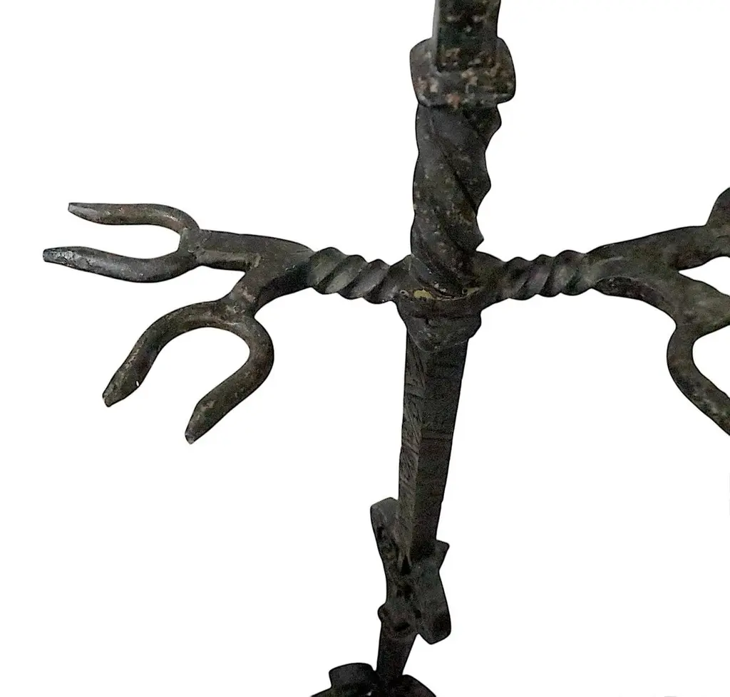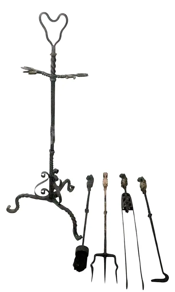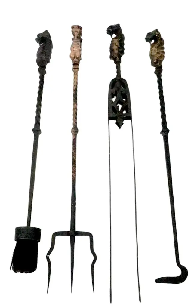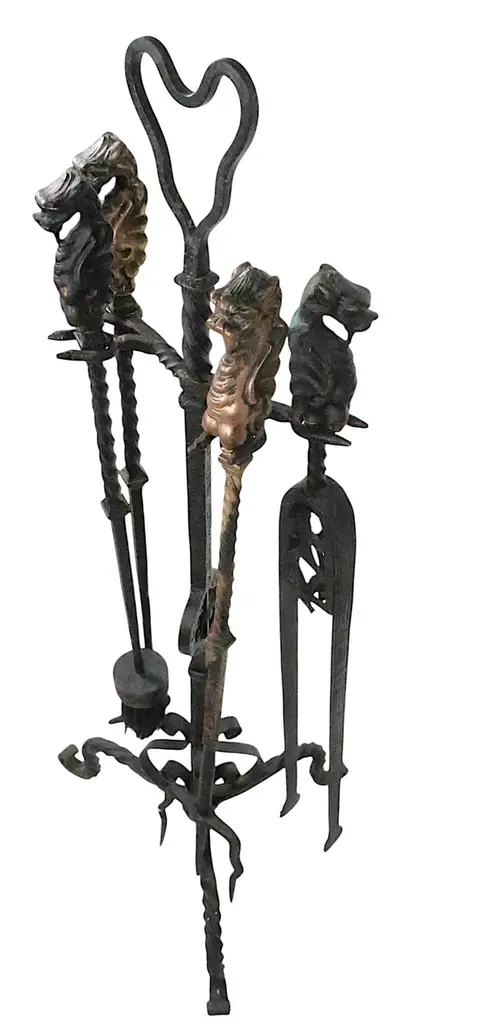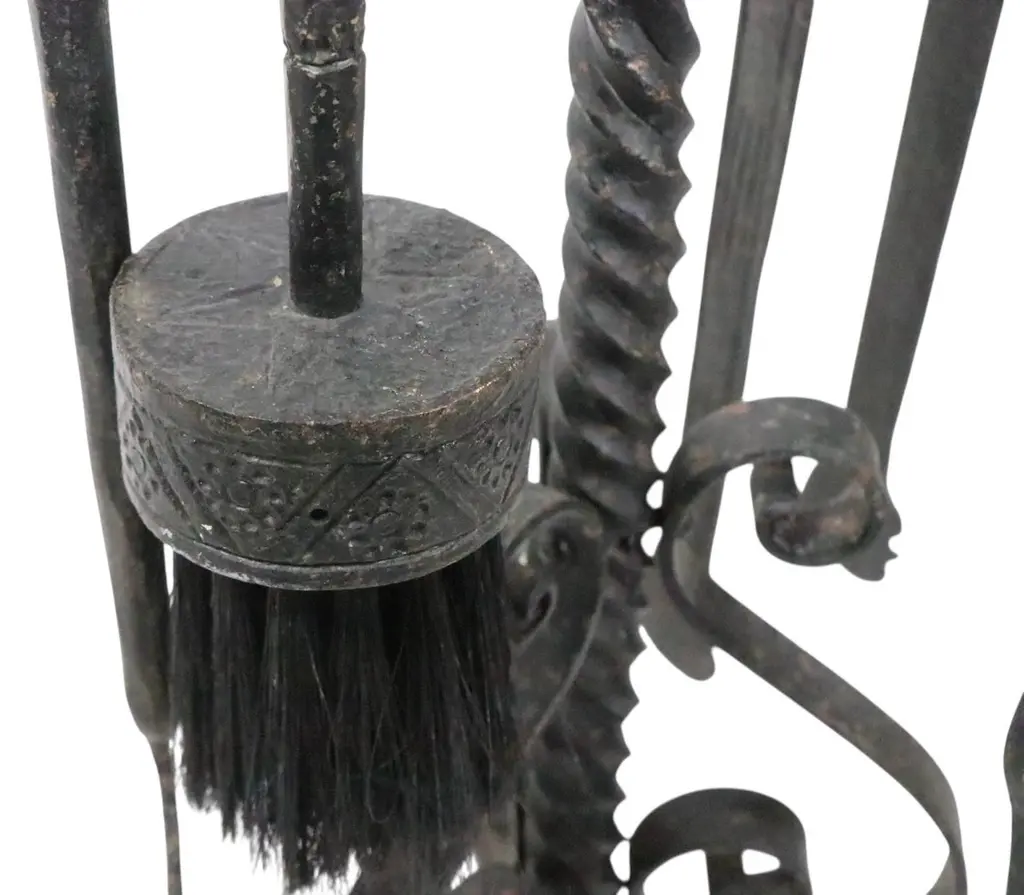 Wrought Iron And Cast Bronze Gothic Fireplace Tool Set C. 19th C.