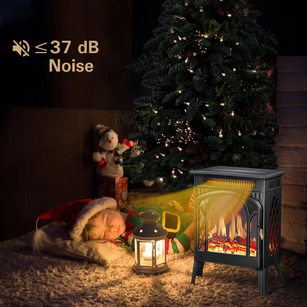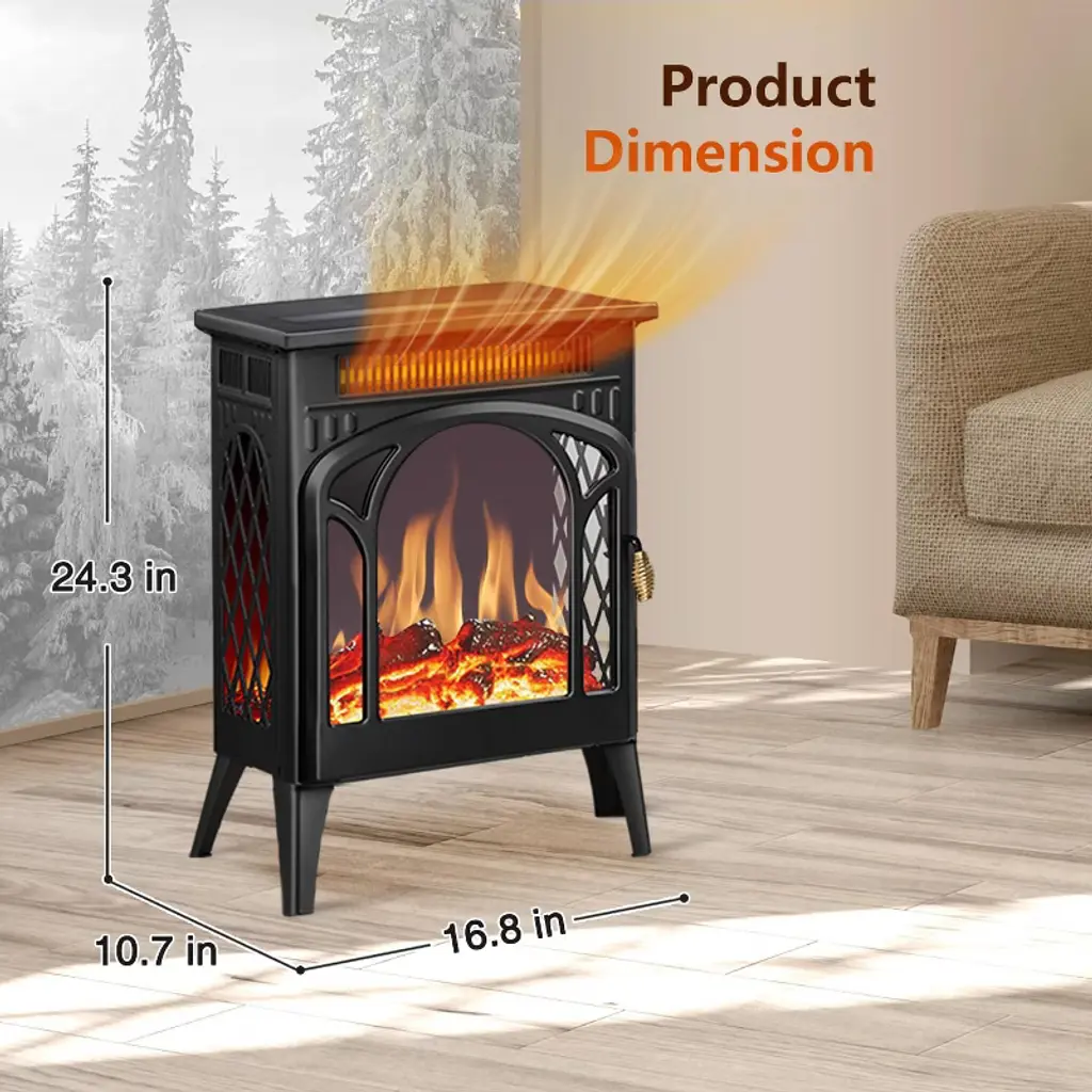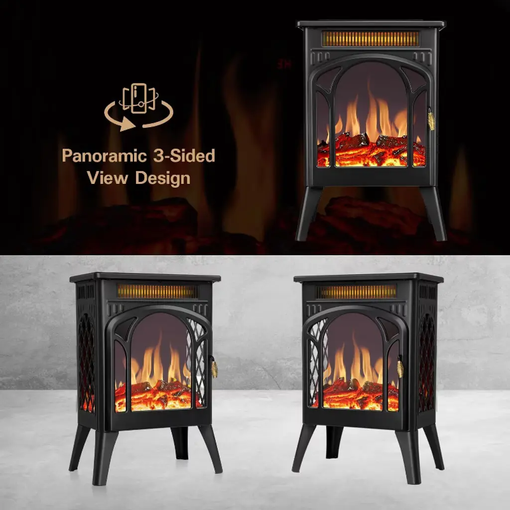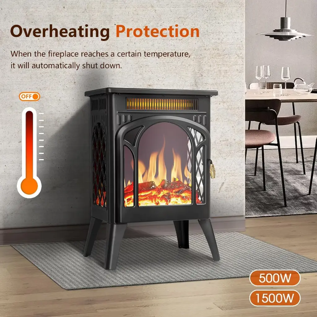 Zafro 16" Freestanding Electric Fireplace Heater , Realistic Flame, Overheat Protection, Cathedral Design For Indoor Use, Black